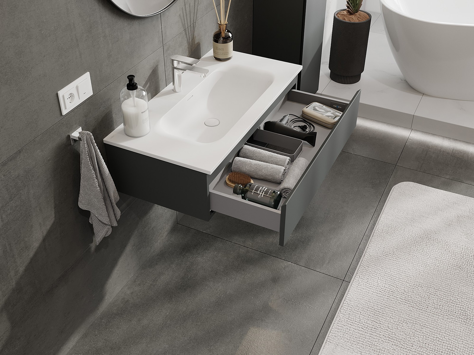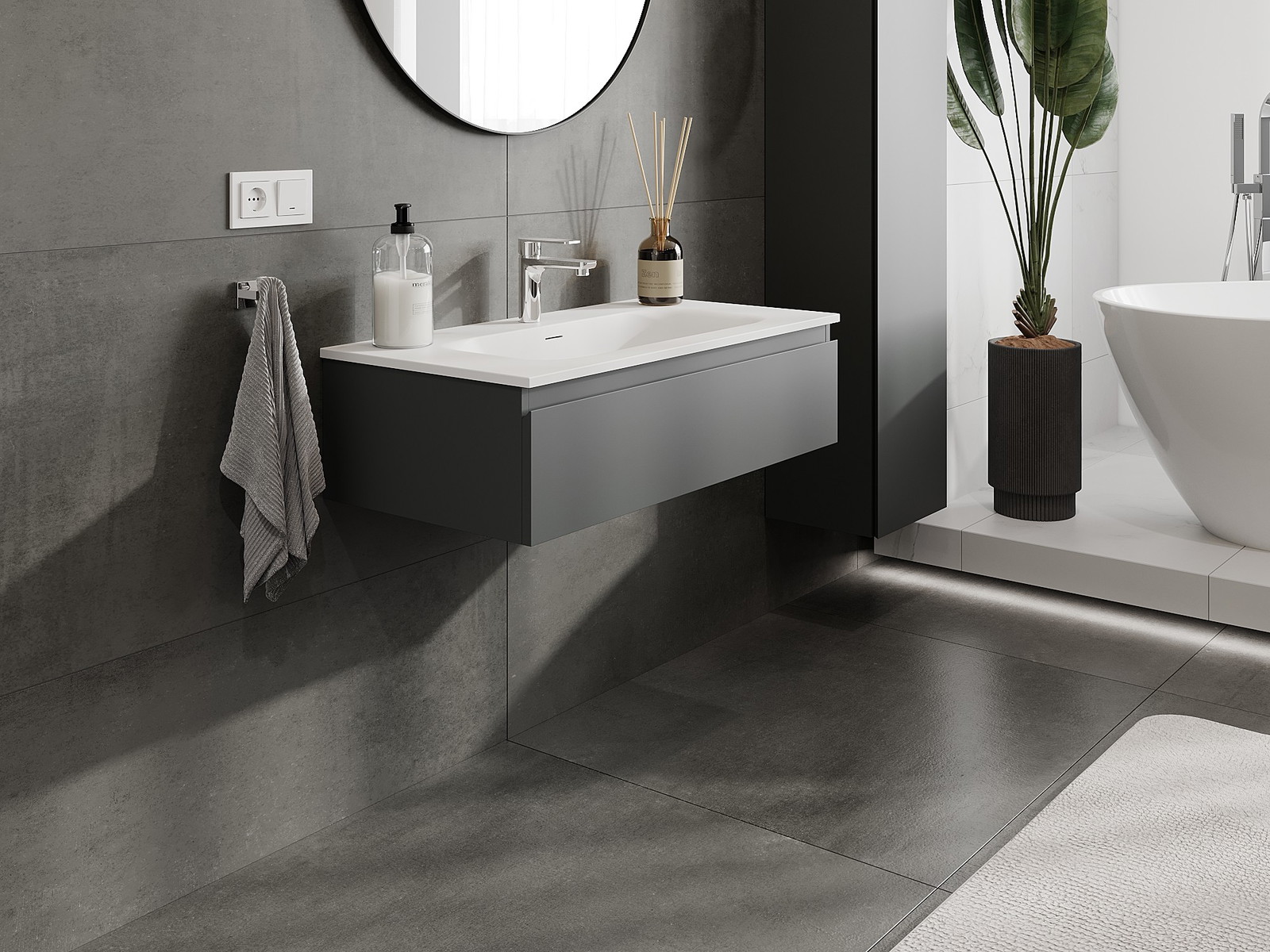 Mexen Orio kúpeľňová skrinka 90 cm s umývadlom Vela, 1 zásuvka, grafit mat/biela mat - 91A10-09023-1-BF66-W23M01