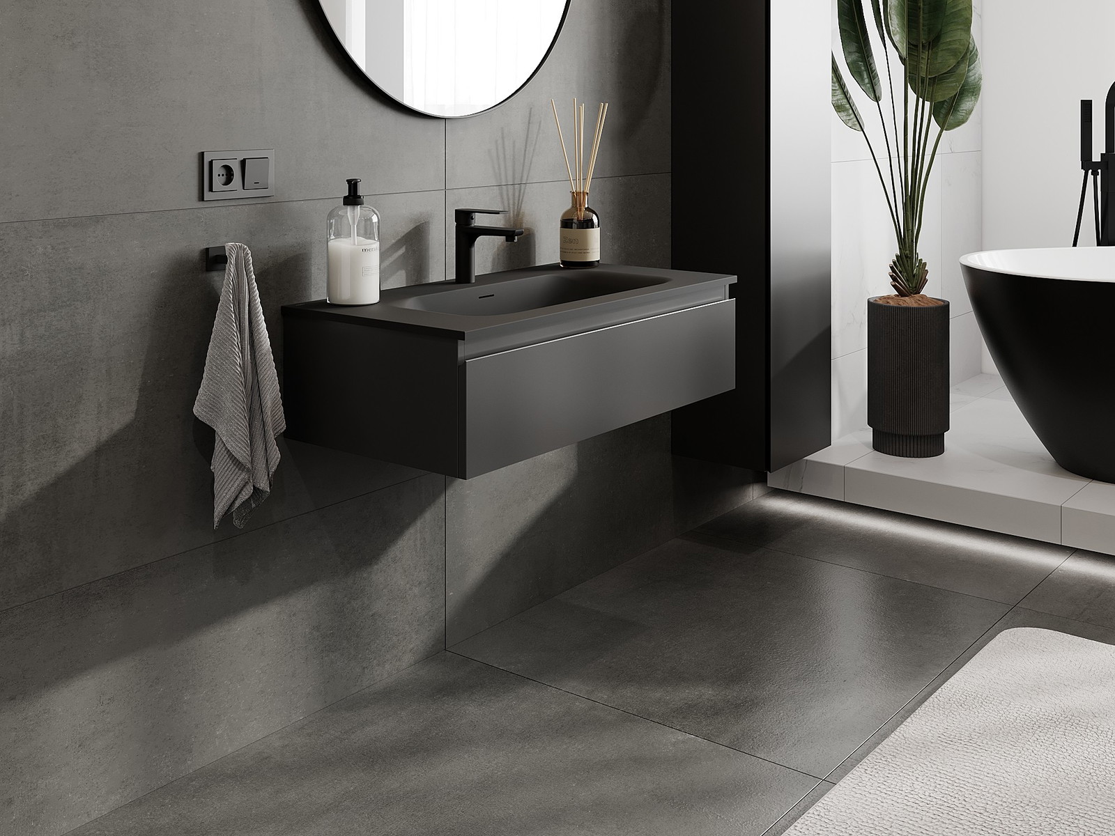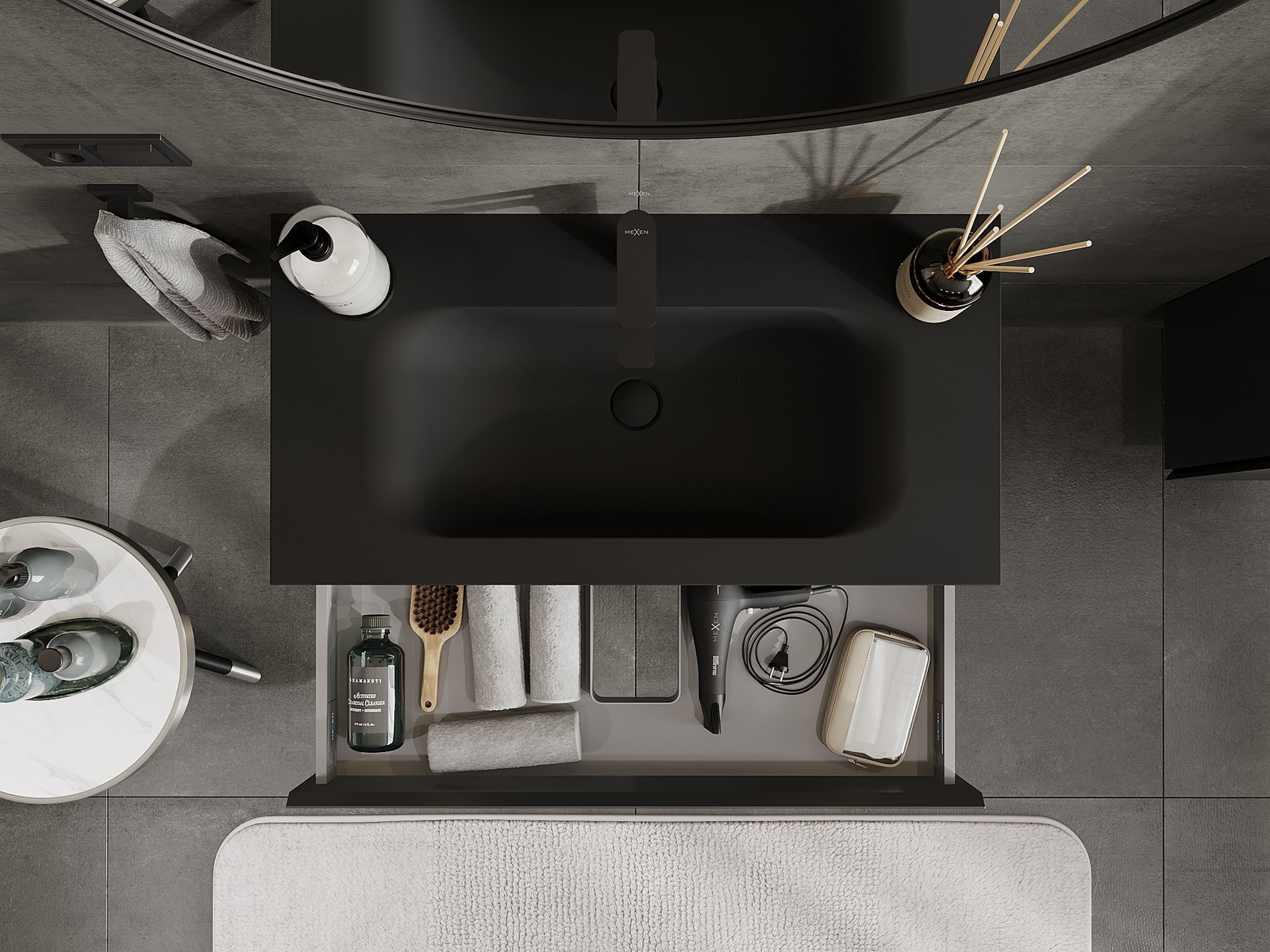 Mexen Orio kúpeľňová skrinka 90 cm s umývadlom Vela, 1 zásuvka, čierna matná - 91A10-09023-1-BF71-W23M71