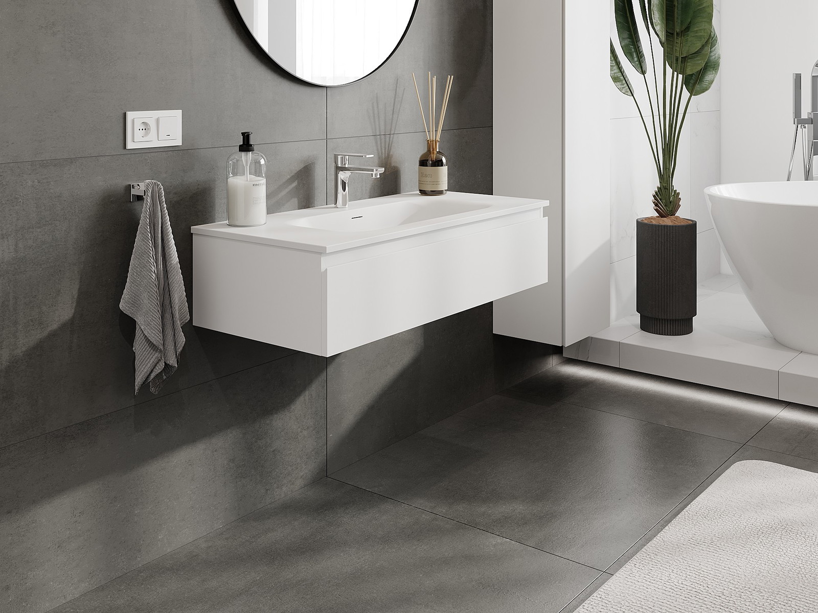 Naše modulárne kúpeľňové nábytkové prvky možno kombinovať v rôznych farebných konfiguráciách, čo umožňuje úplnú personalizáciu. Môžete si vybrať vzhľad aj funkcie jednotlivých prvkov, čo umožňuje prispôsobiť nábytok vašim vlastným štýlovým a používateľským preferenciám.
