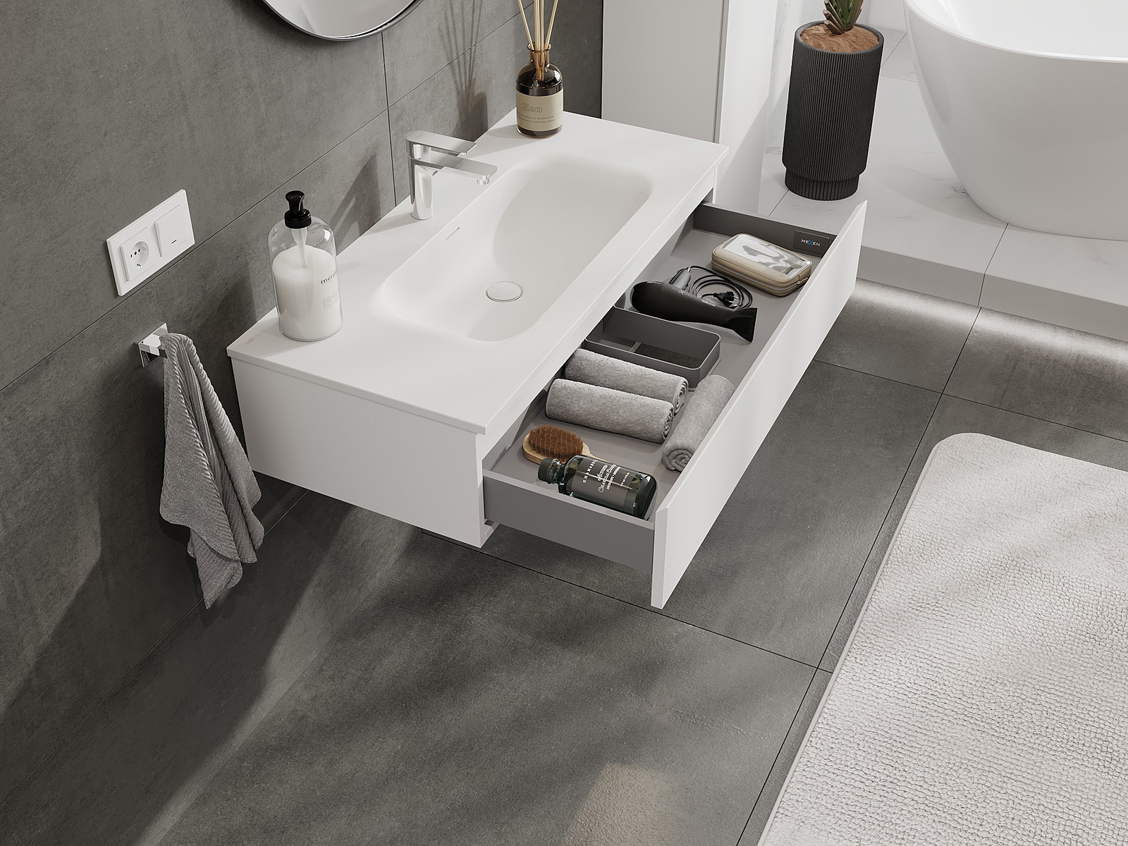 Mexen Orio kúpeľňová skrinka 100 cm s umývadlom Vela, 1 zásuvka, biela matná - 91A10-10023-1-BF01-W23M01