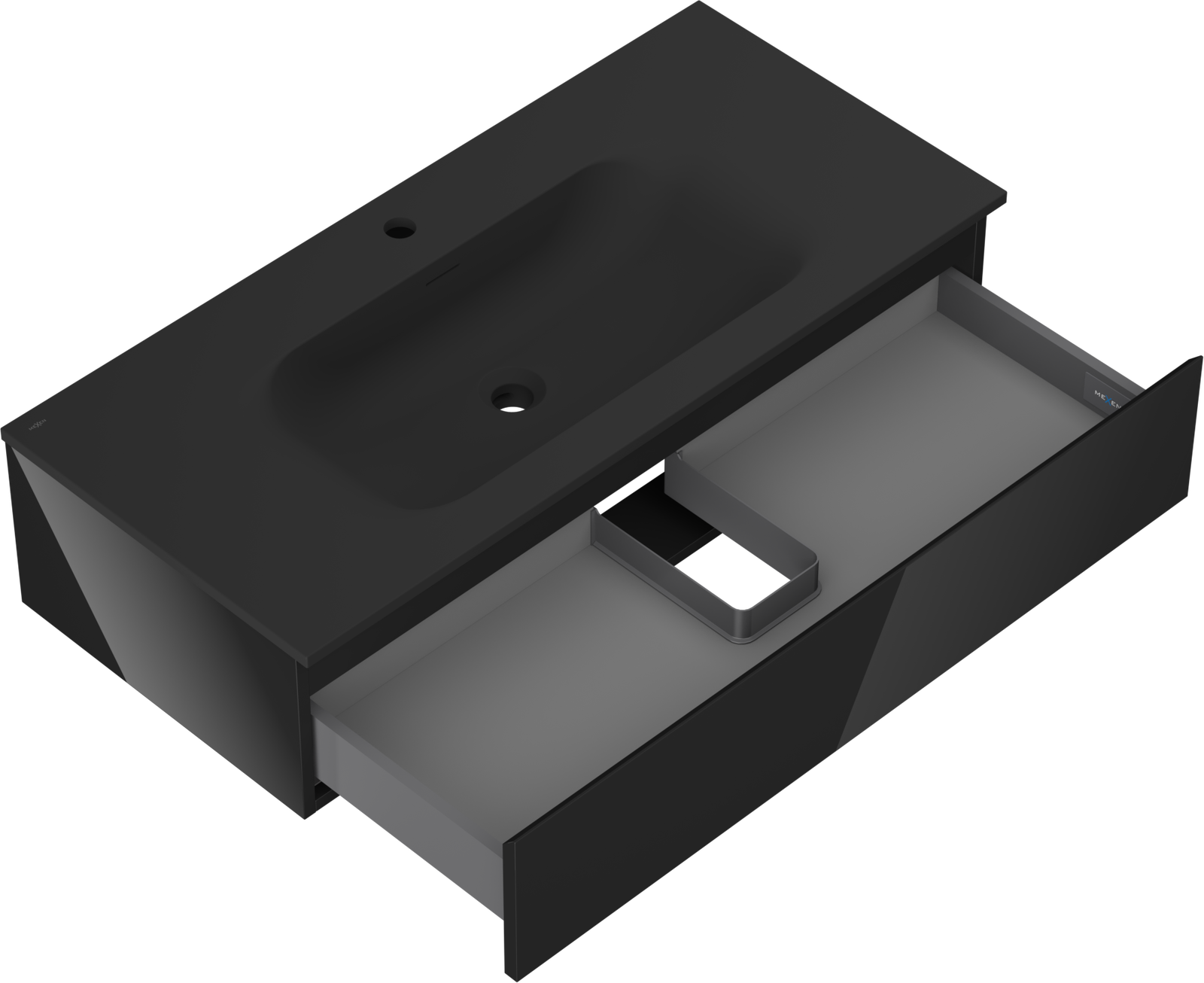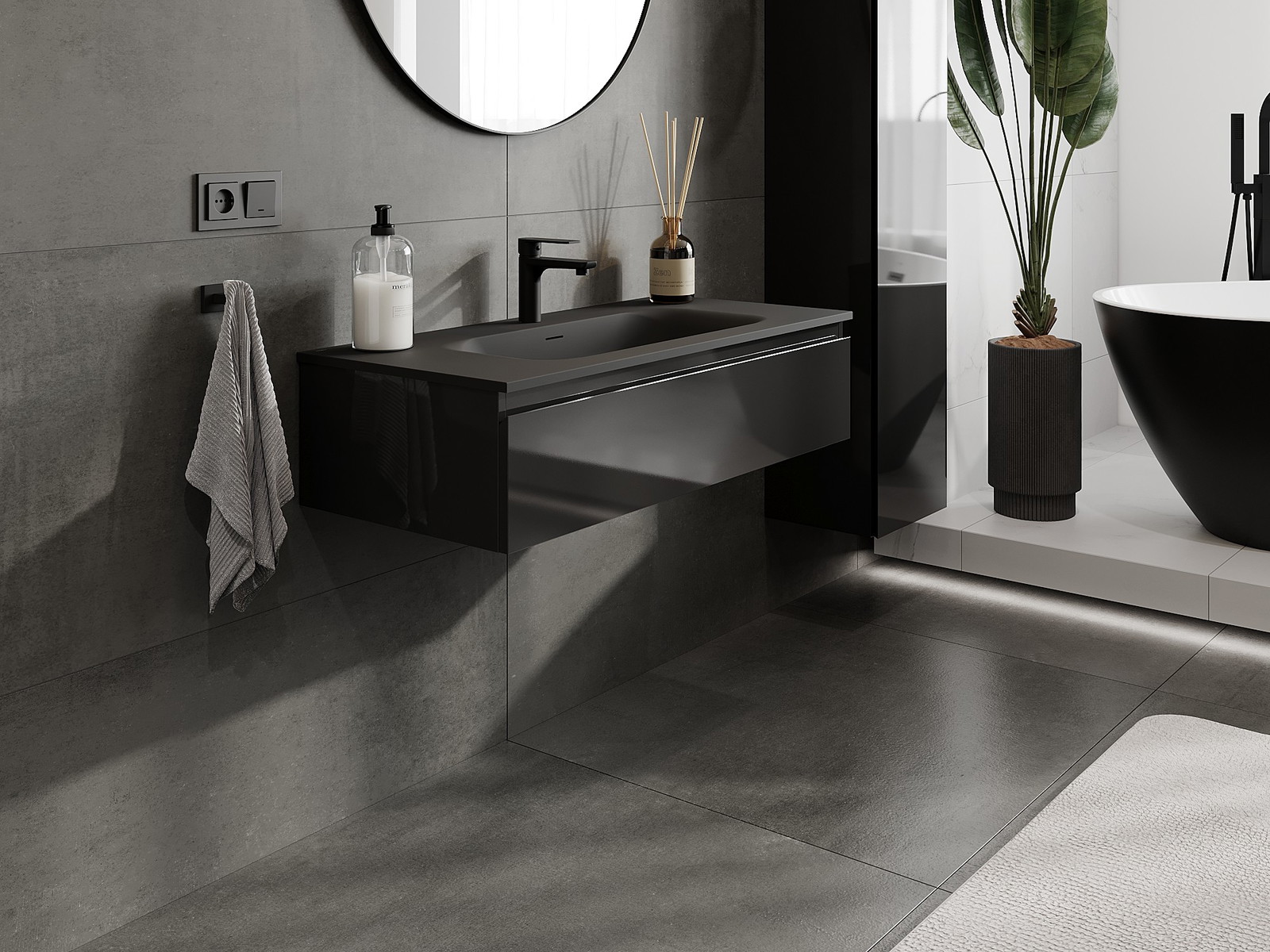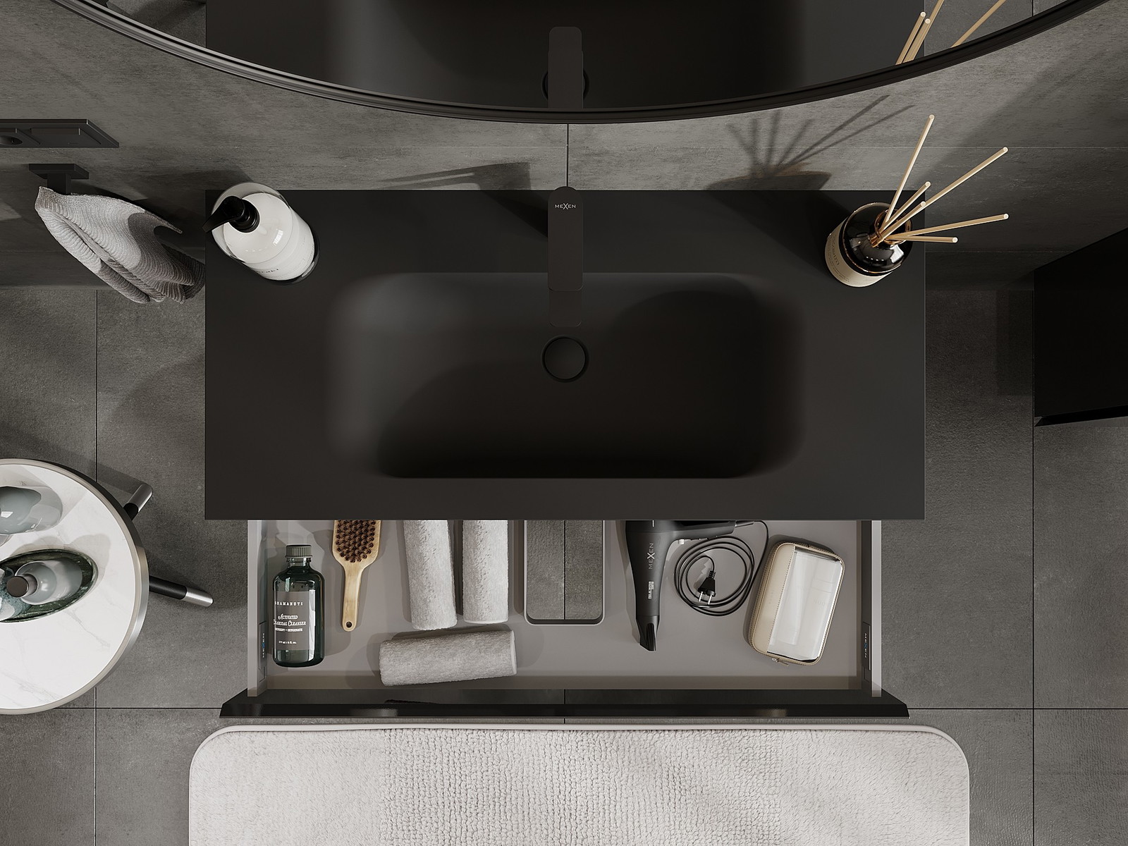 Mexen Orio kúpeľňová skrinka 100 cm s umývadlom Vela, 1 zásuvka, čierna lesk/čierna mat - 91A10-10023-1-BF70-W23M71