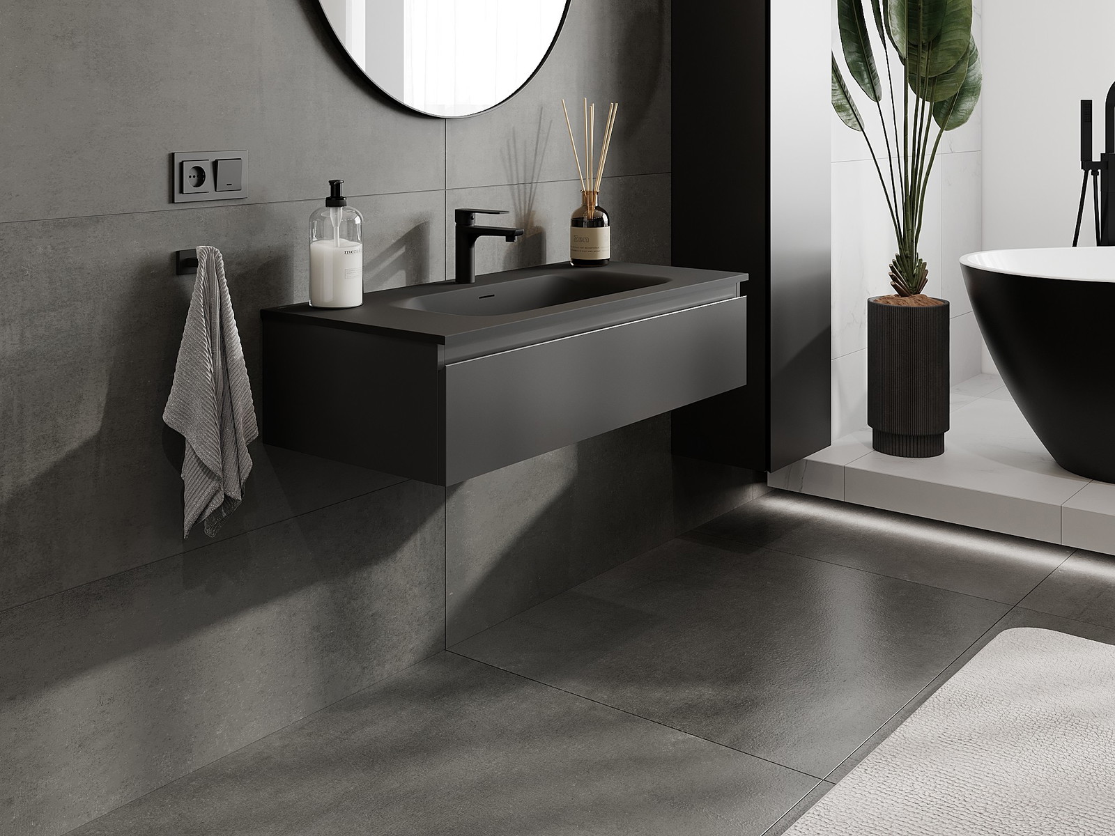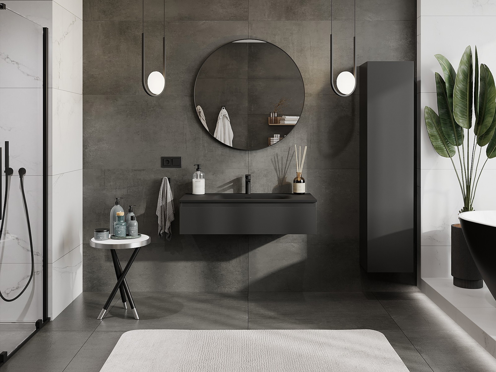 Mexen Orio kúpeľňová skrinka 100 cm s umývadlom Vela, 1 zásuvka, čierna matná - 91A10-10023-1-BF71-W23M71