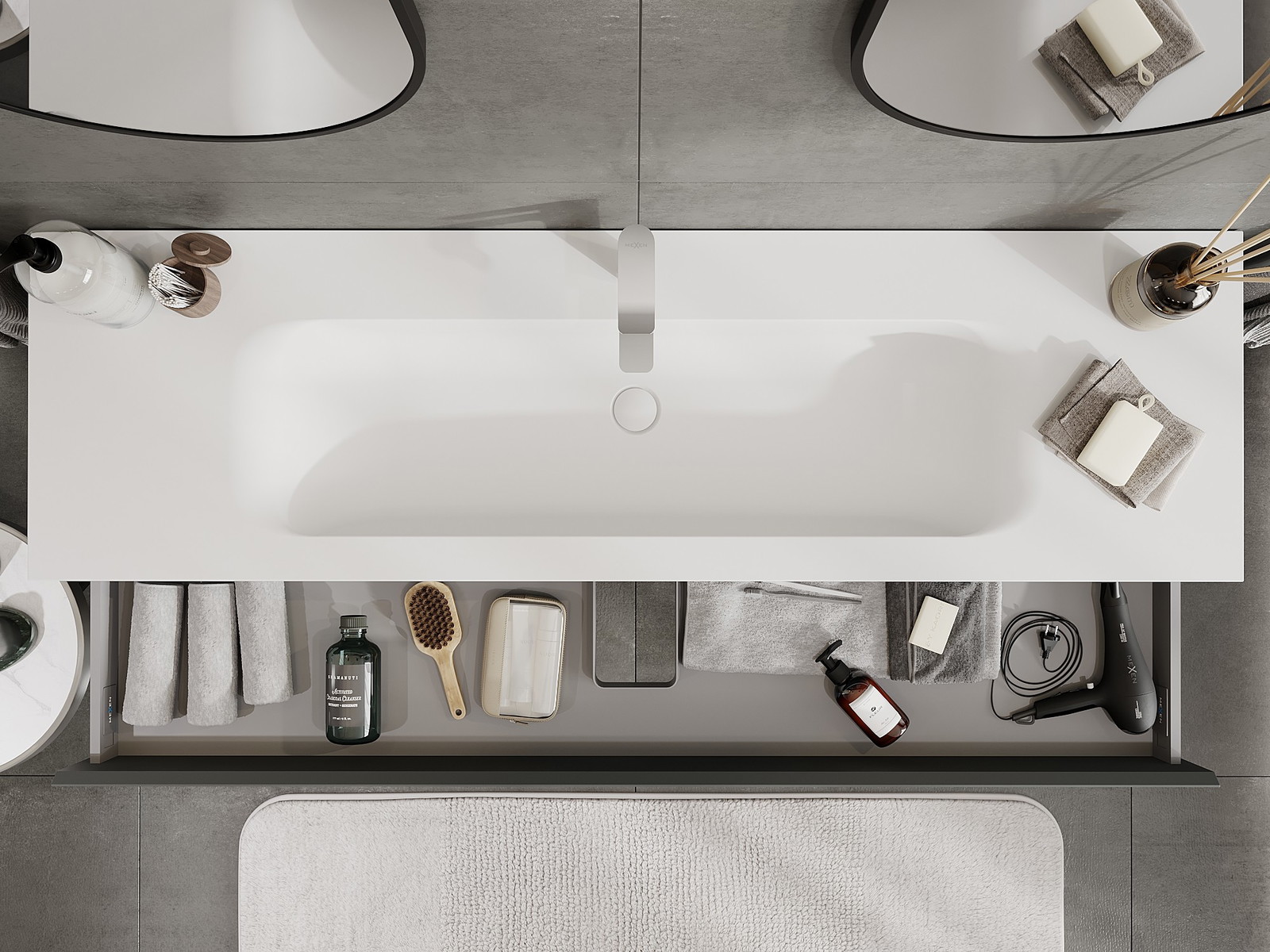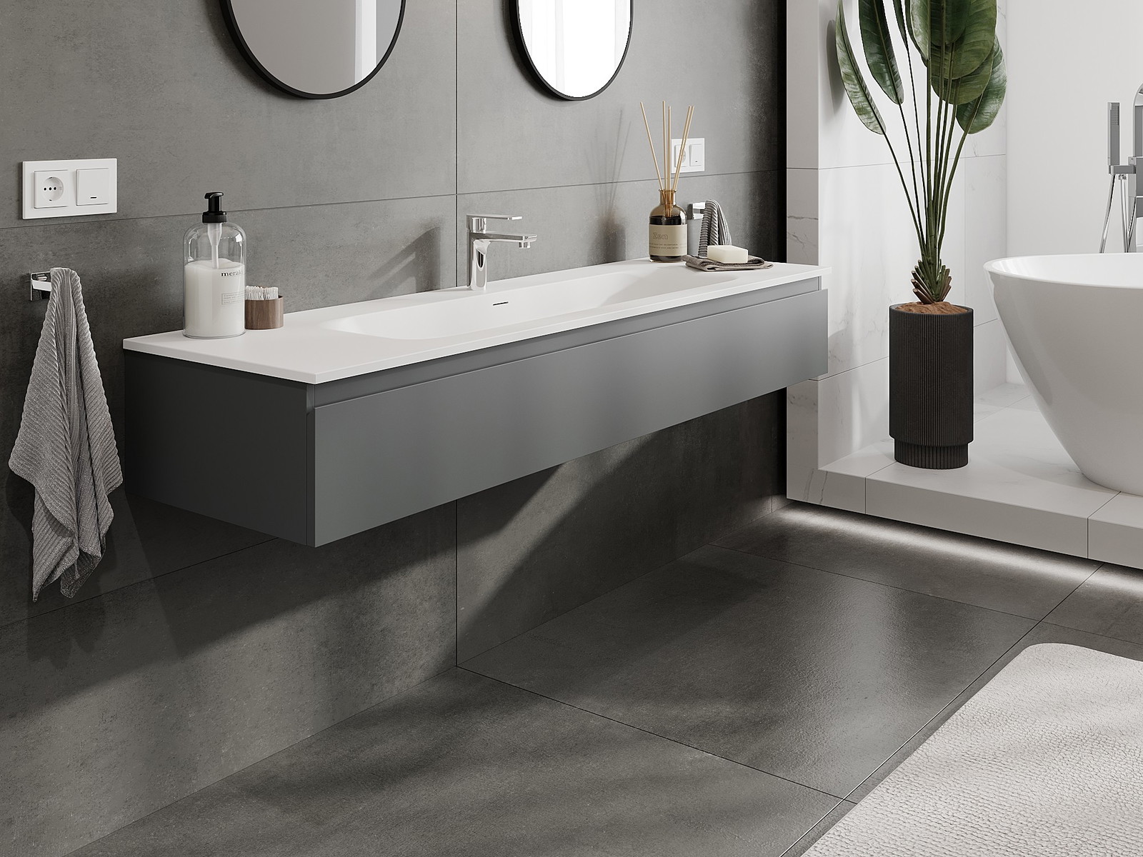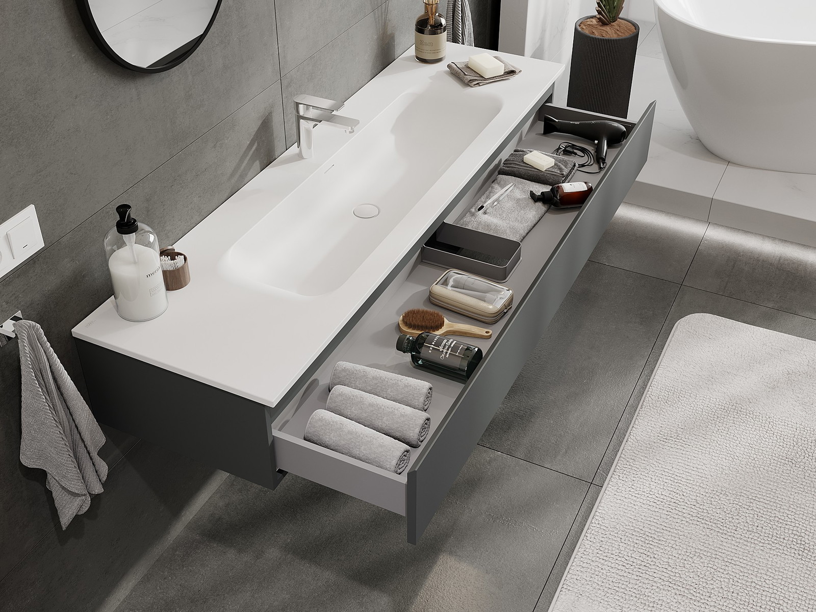 Mexen Orio kúpeľňová skrinka 160 cm s umývadlom Vela, 1 zásuvka, grafit mat/biela mat - 91A10-16023-1-BF66-W23M01