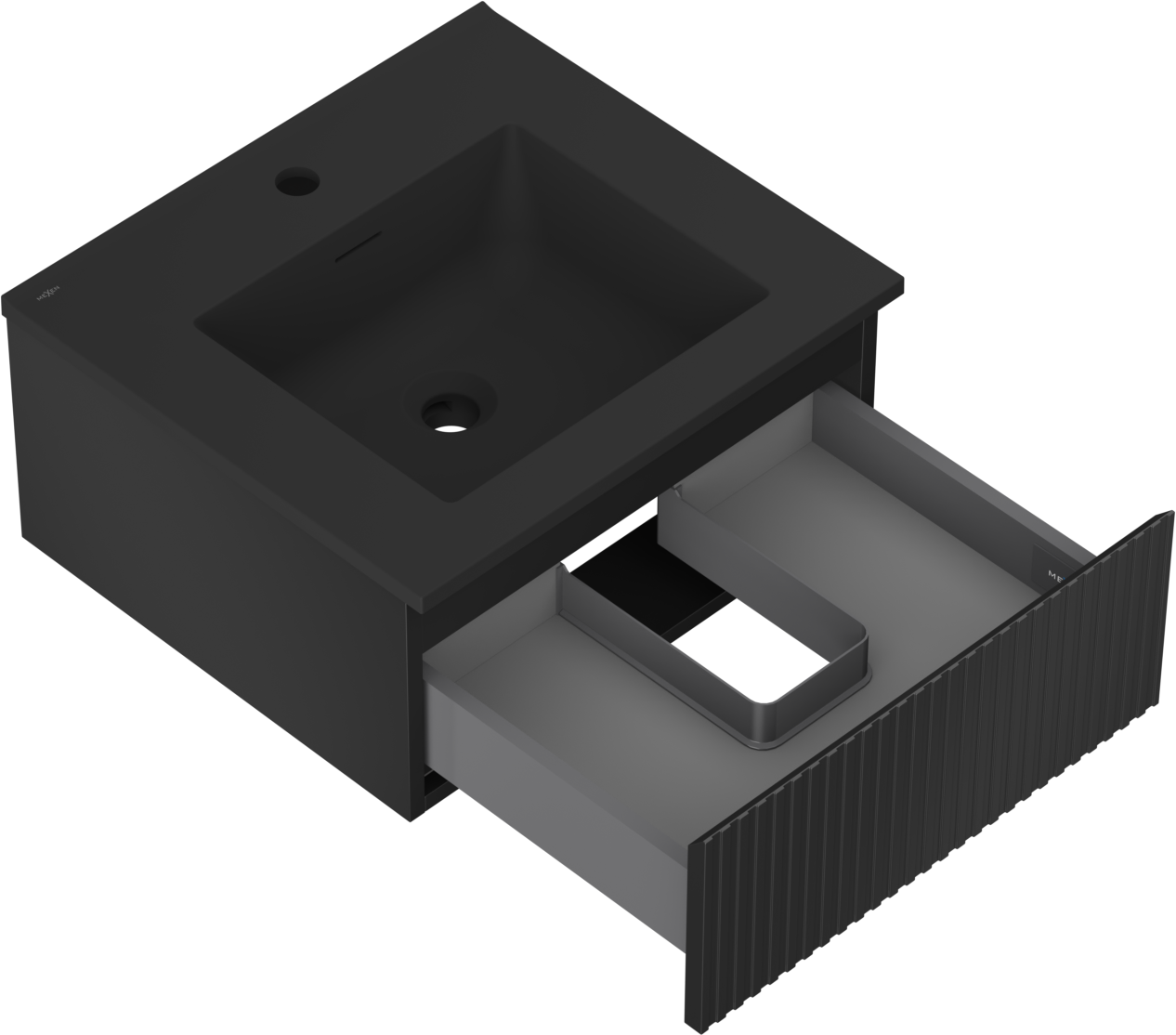 Mexen Rivel kúpeľňová skrinka 50 cm s umývadlom Otis, 1 zásuvka, ryhovaná, čierny mat - 91A20-05023-1-BF71-W18M71