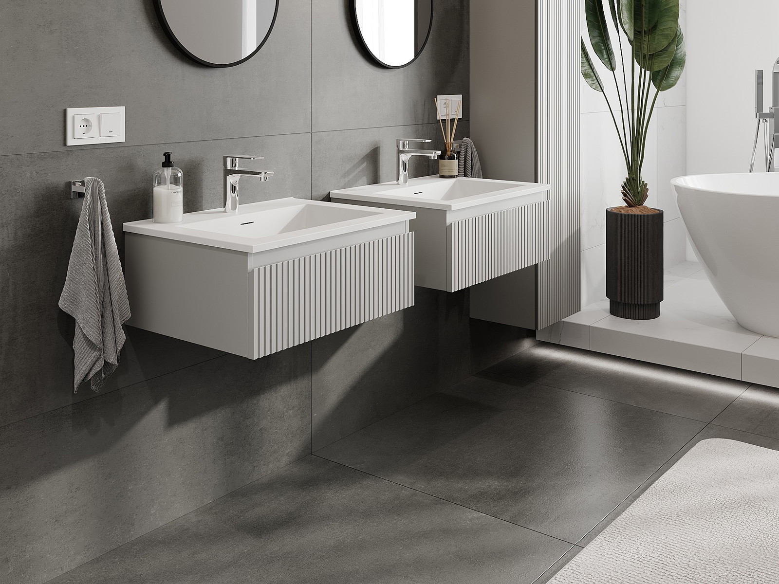 Naše modulárne kúpeľňové nábytkové prvky možno kombinovať v rôznych farebných konfiguráciách, čo umožňuje úplnú personalizáciu. Môžete si vybrať vzhľad aj funkcie jednotlivých prvkov, čo umožňuje prispôsobiť nábytok vašim vlastným štýlovým a používateľským preferenciám.