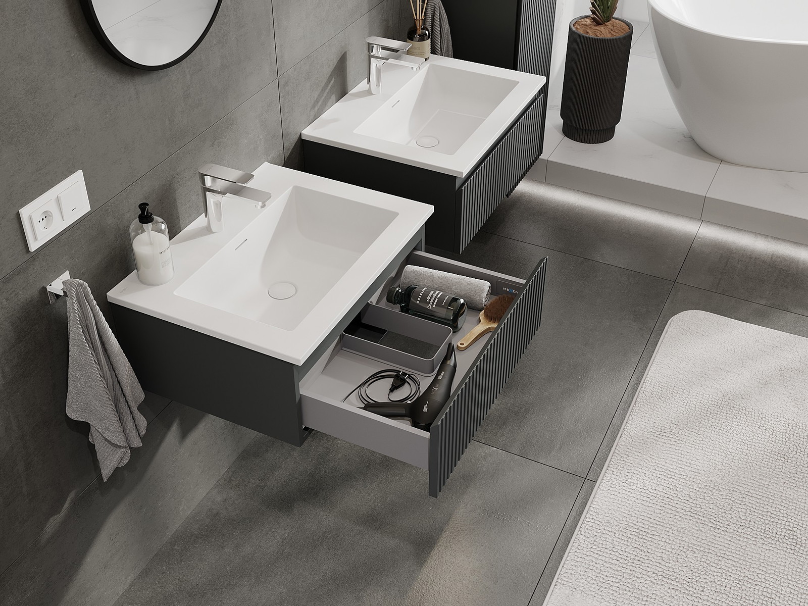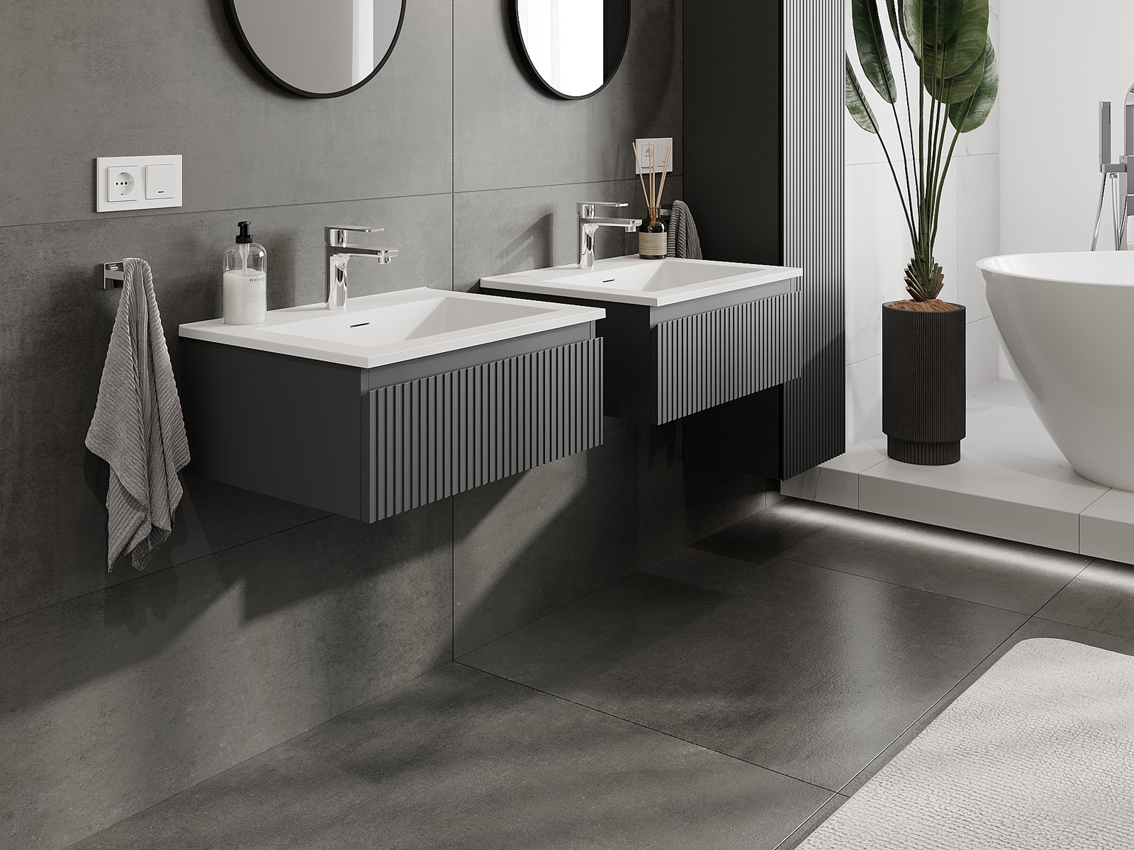 Mexen Rivel kúpeľňová skrinka 60 cm s umývadlom Otis, 1 zásuvka, ryhovaná, grafit mat/biela mat - 91A20-06023-1-BF66-W18M01