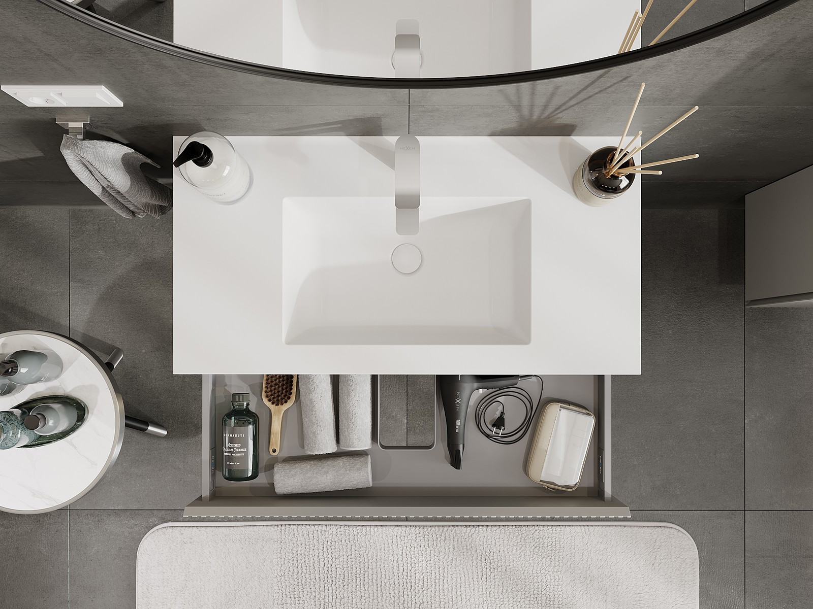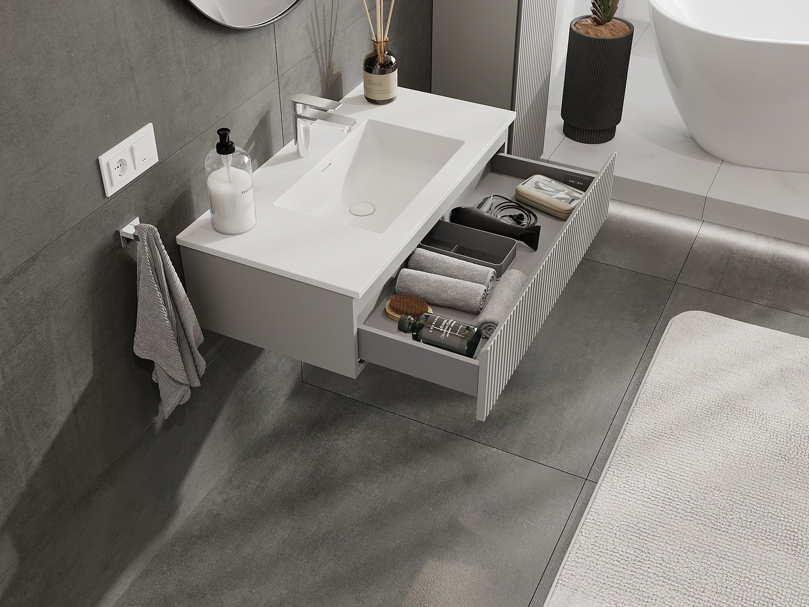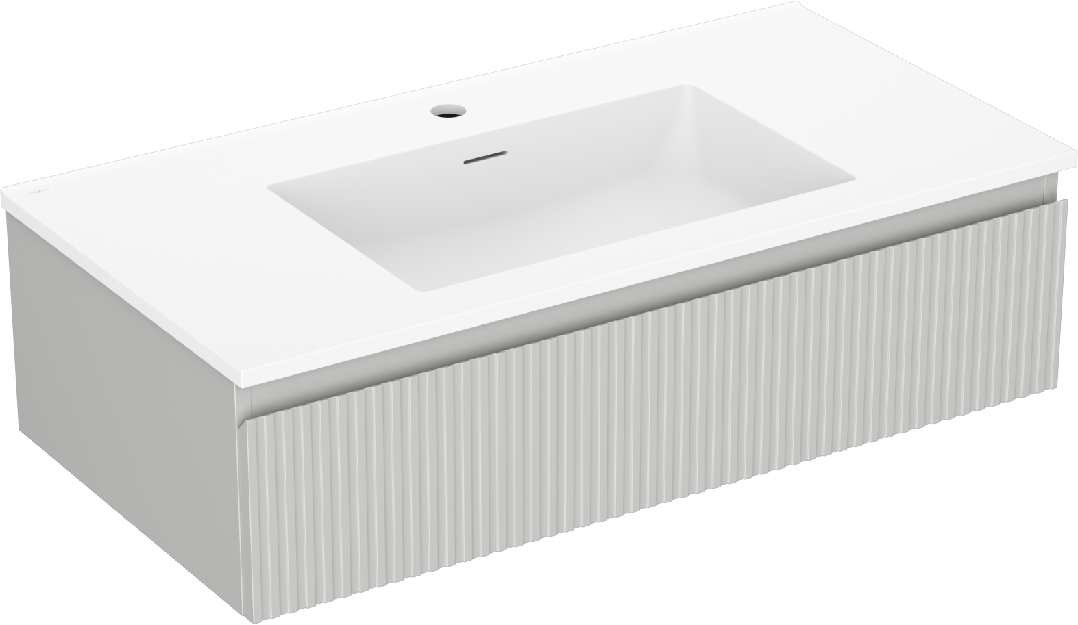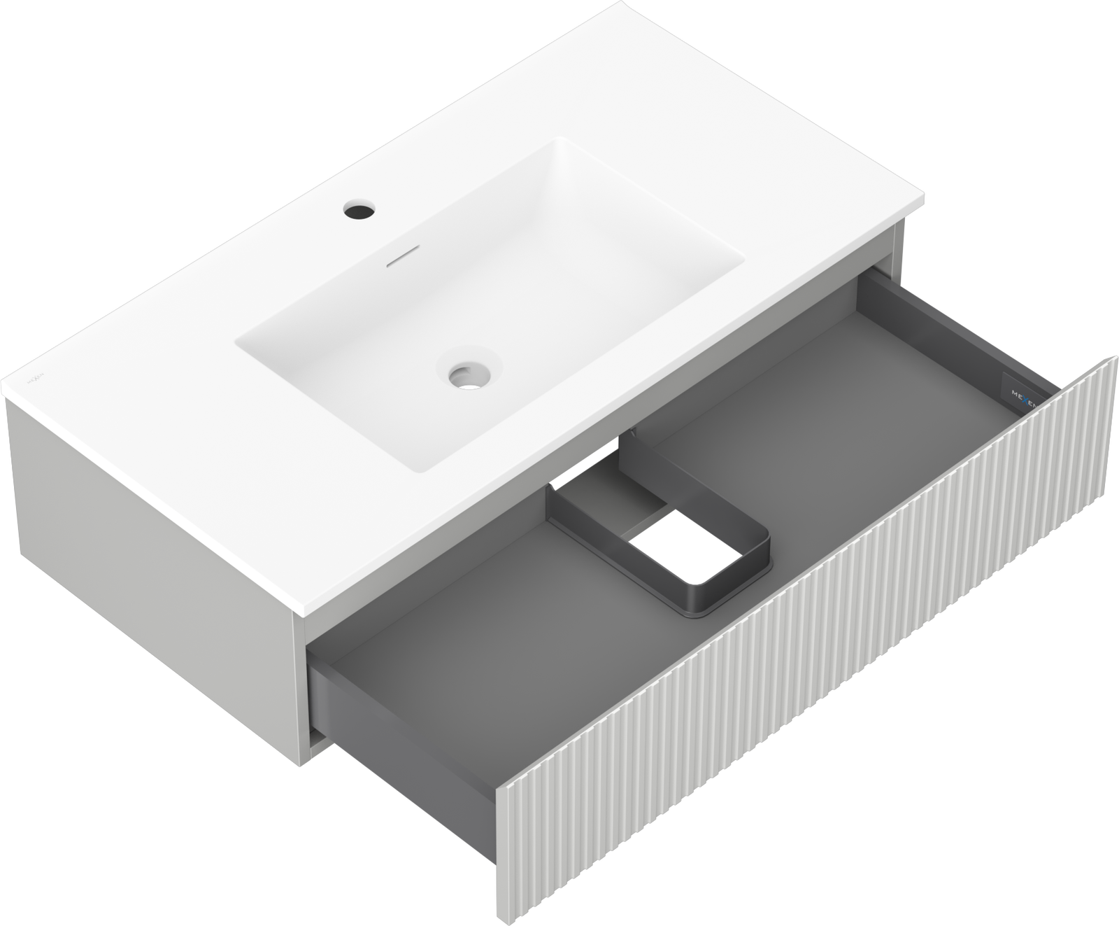 Mexen Rivel kúpeľňová skrinka 90 cm s umývadlom Otis, 1 zásuvka, drážkovaná, šedá matná/biela matná - 91A20-09023-1-BF62-W18M01