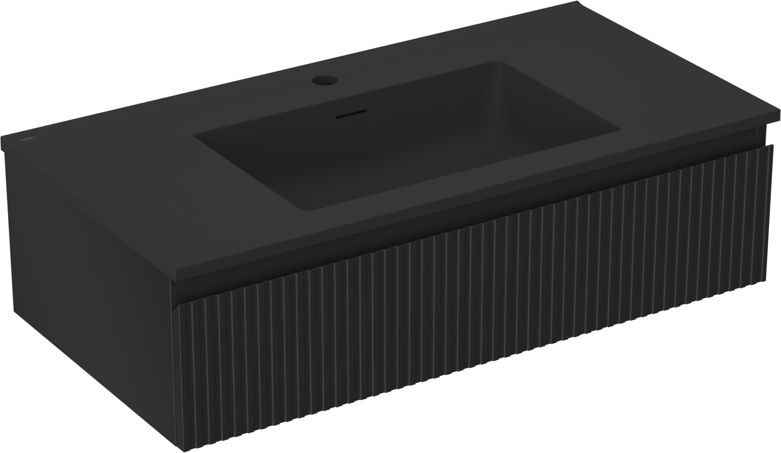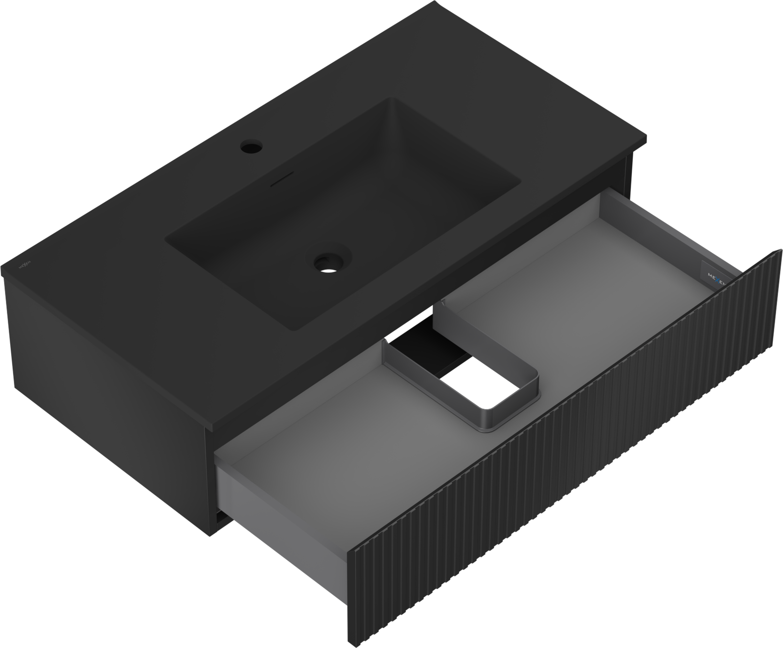 Mexen Rivel kúpeľňová skrinka 90 cm s umývadlom Otis, 1 zásuvka, rýhovaná, čierna mat - 91A20-09023-1-BF71-W18M71