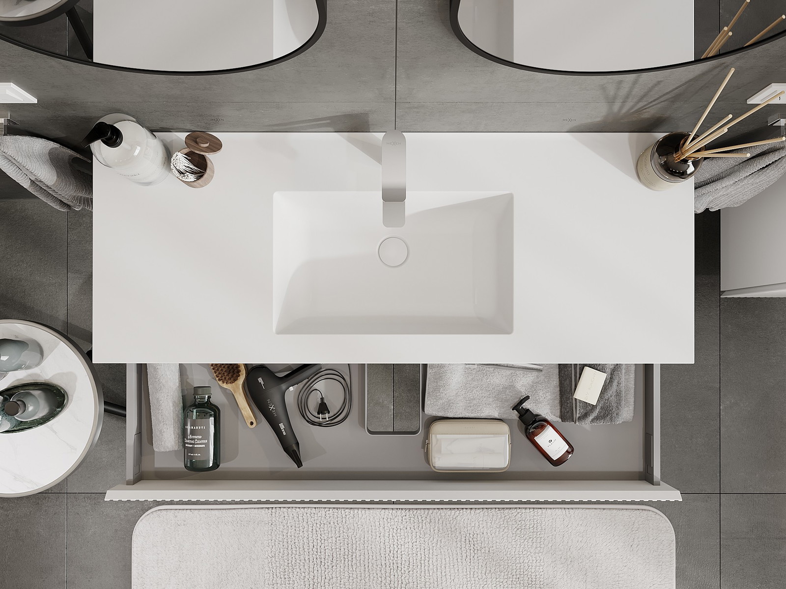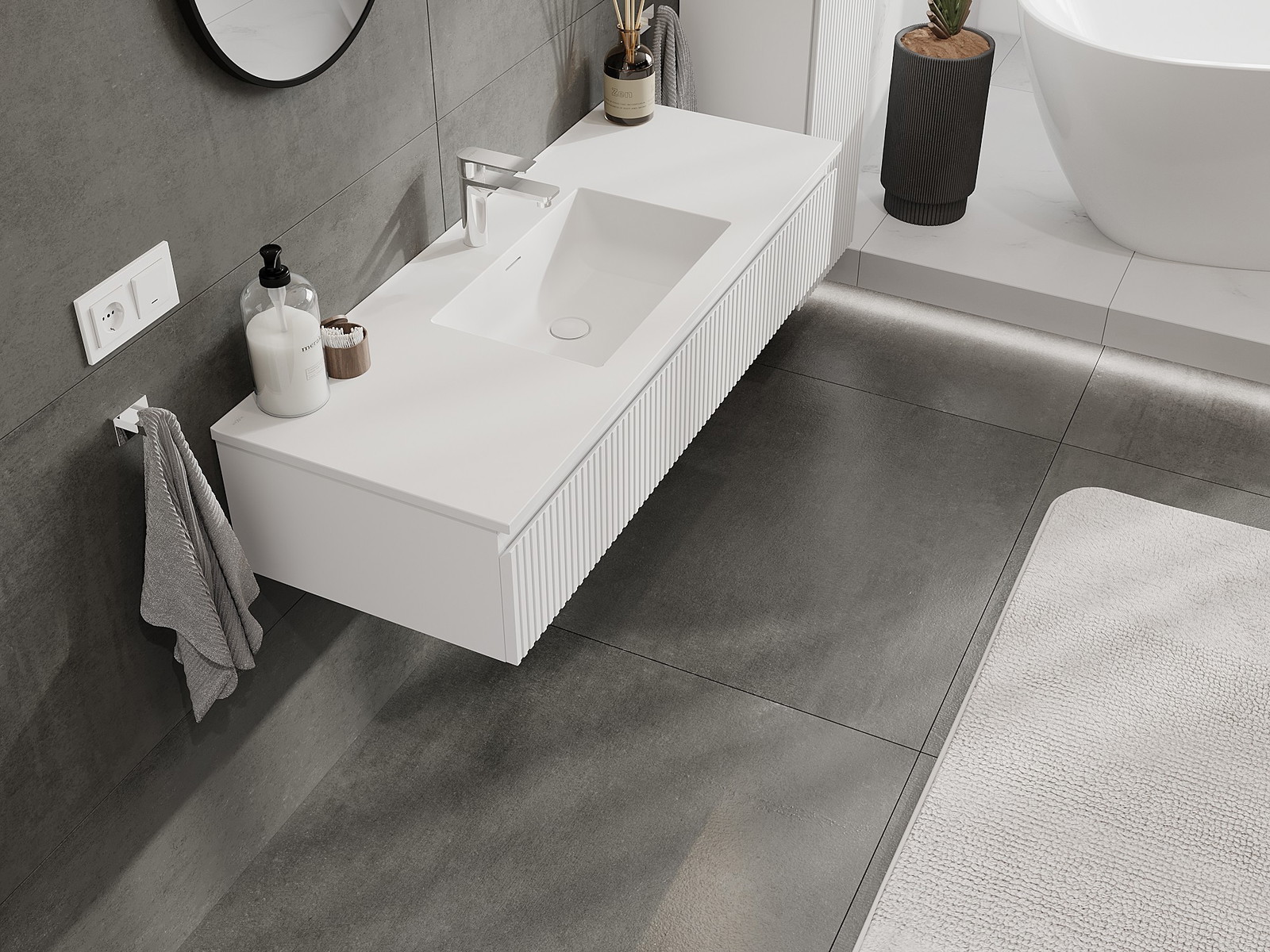 Vďaka pevným materiálom, precíznemu prevedeniu a moderným technologickým riešeniam, produkt poskytuje pohodlie používania, odolnosť voči vlhkosti a zmenám teploty, ako aj elegantný vzhľad, ktorý sa hodí k rôznym štýlom kúpeľní.