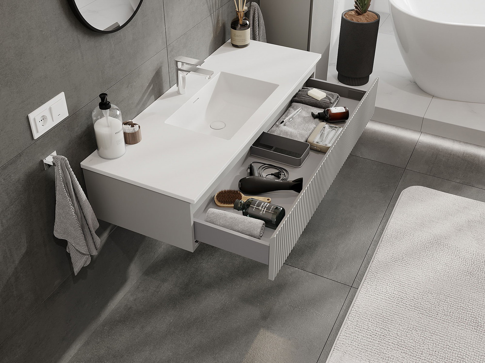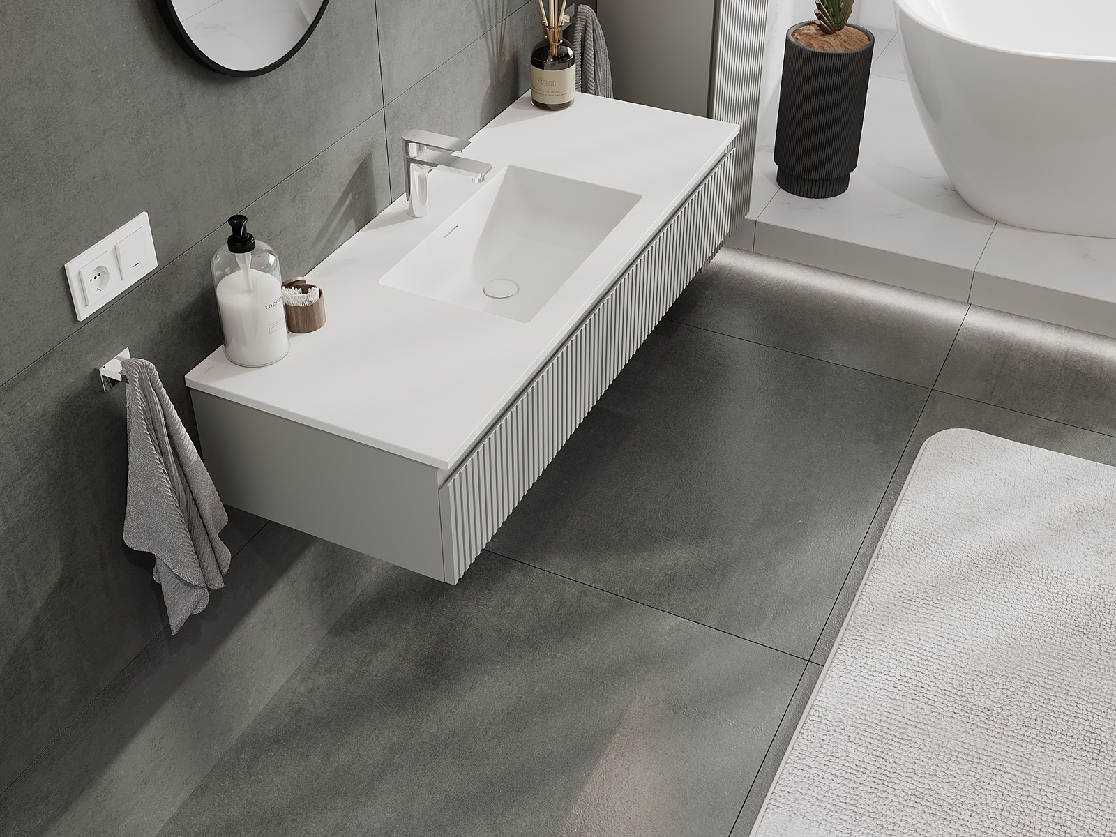 Mexen Rivel kúpeľňová skrinka 120 cm s umývadlom Otis, 1 zásuvka, ryhovaná, sivá matná/biela matná - 91A20-12023-1-BF62-W18M01