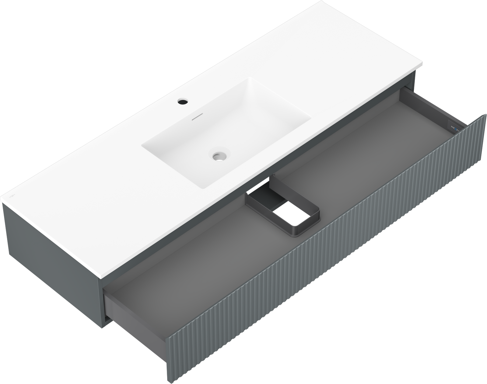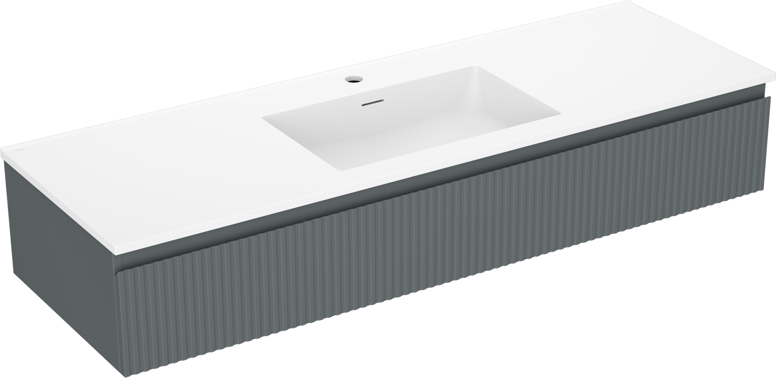 Mexen Rivel kúpeľňová skrinka 140 cm s umývadlom Otis, 1 zásuvka, ryhovaná, grafit mat/biela mat -