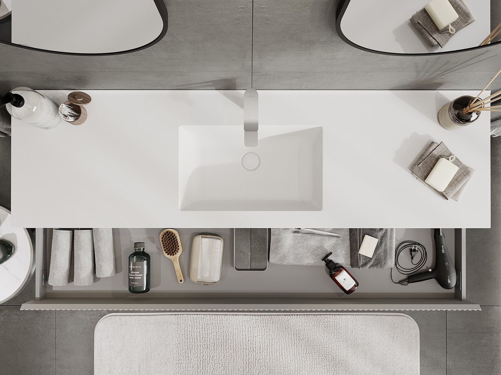 Naše modulárne kúpeľňové nábytkové prvky možno kombinovať v rôznych farebných konfiguráciách, čo umožňuje úplnú personalizáciu. Môžete si vybrať vzhľad aj funkcie jednotlivých prvkov, čo umožňuje prispôsobiť nábytok vašim vlastným štýlovým a používateľským preferenciám.