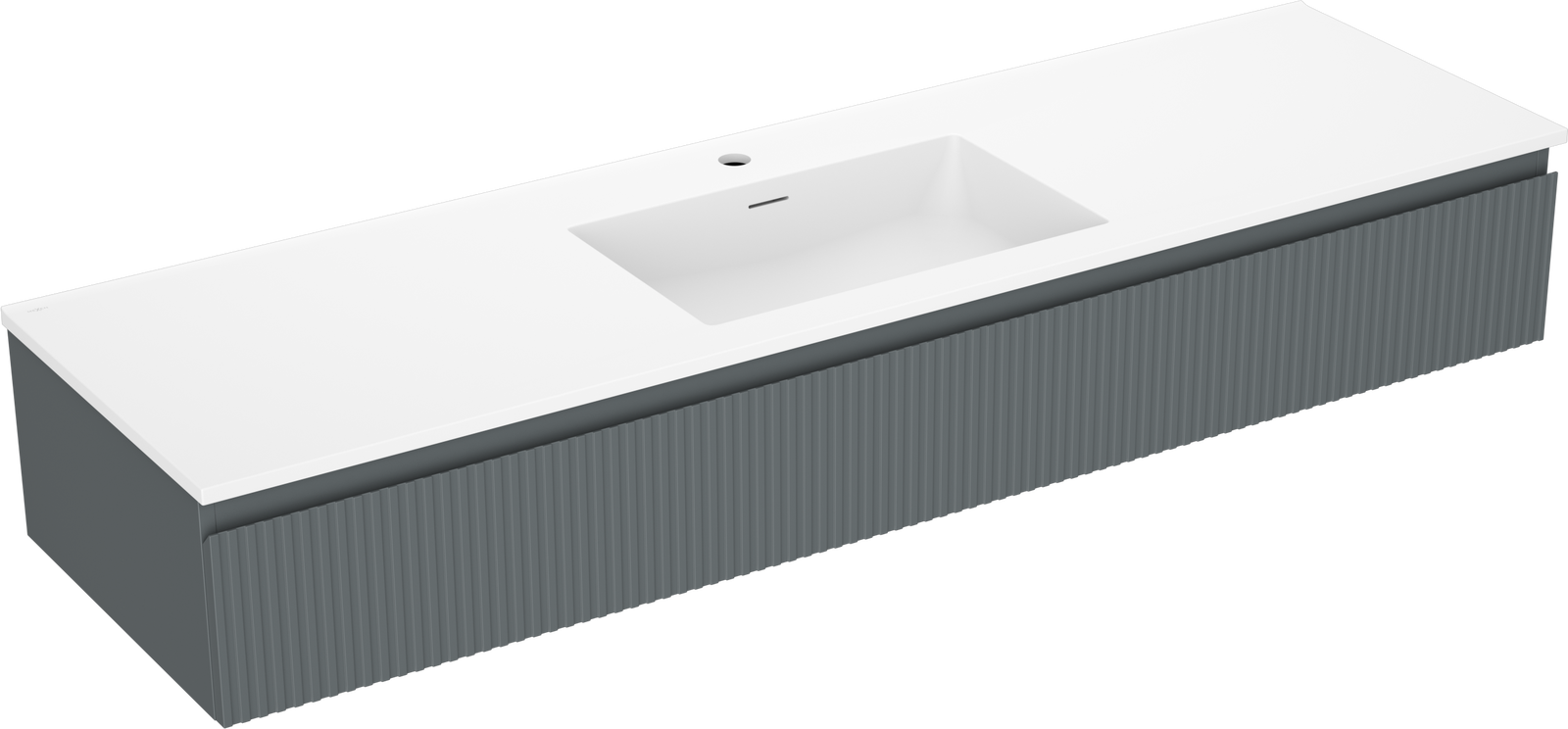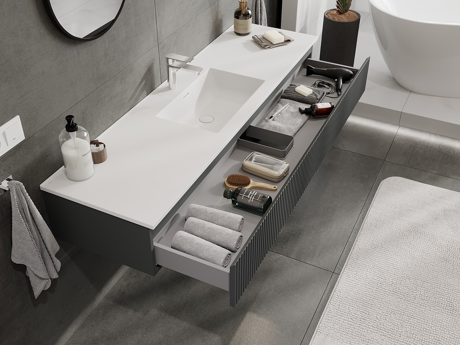 Mexen Rivel kúpeľňová skrinka 160 cm s umývadlom Otis, 1 zásuvka, drážkovaná, grafitová matná/biela matná -