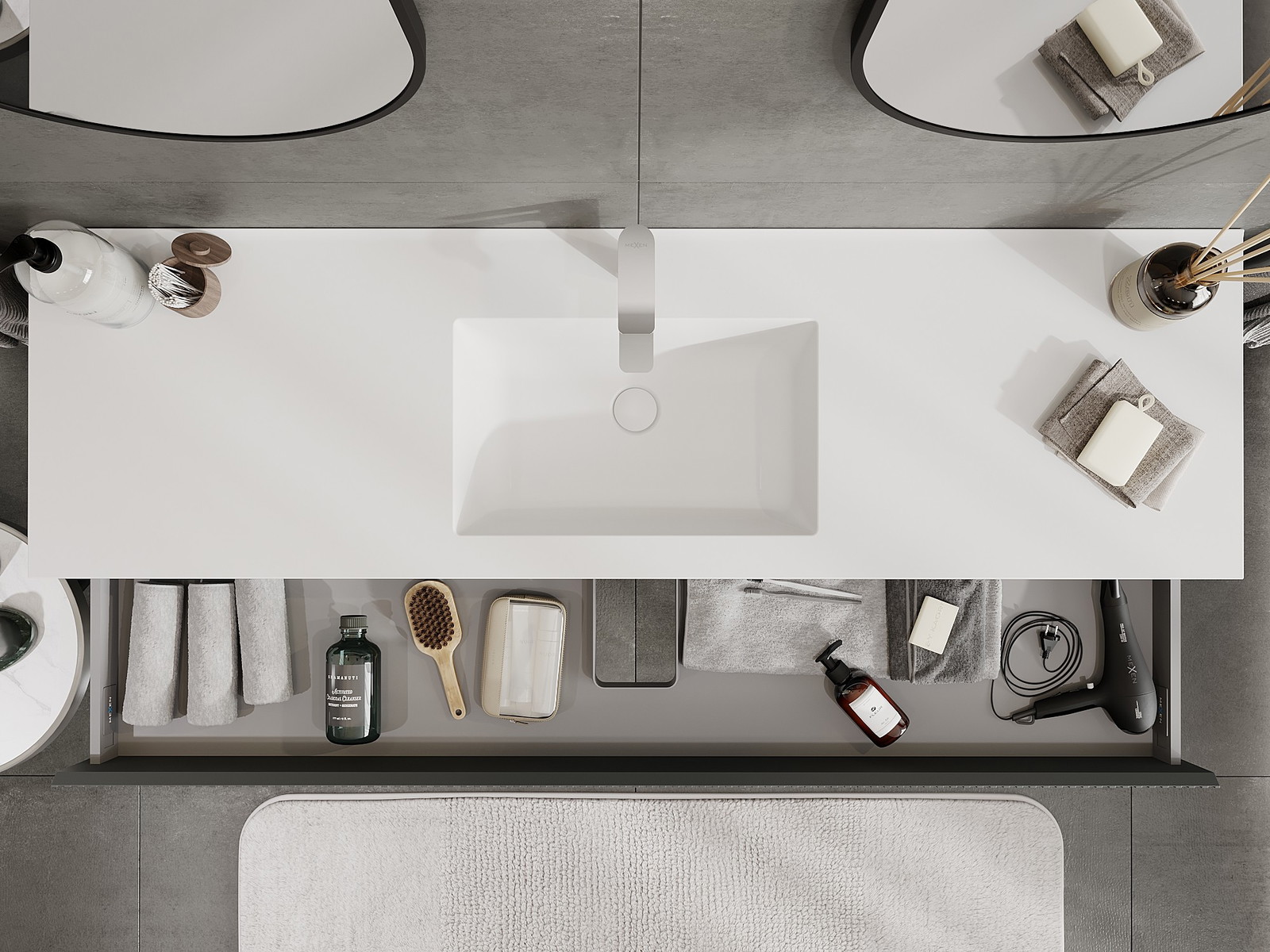 Výrez v zásuvke je navrhnutý tak, aby pojal sifón, ktorý je nevyhnutný v umývadlových inštaláciách. Vďaka tomu môže byť nábytok namontovaný plne funkčne, bez nutnosti vzdávať sa priestoru v zásuvke v prospech inštalácie.