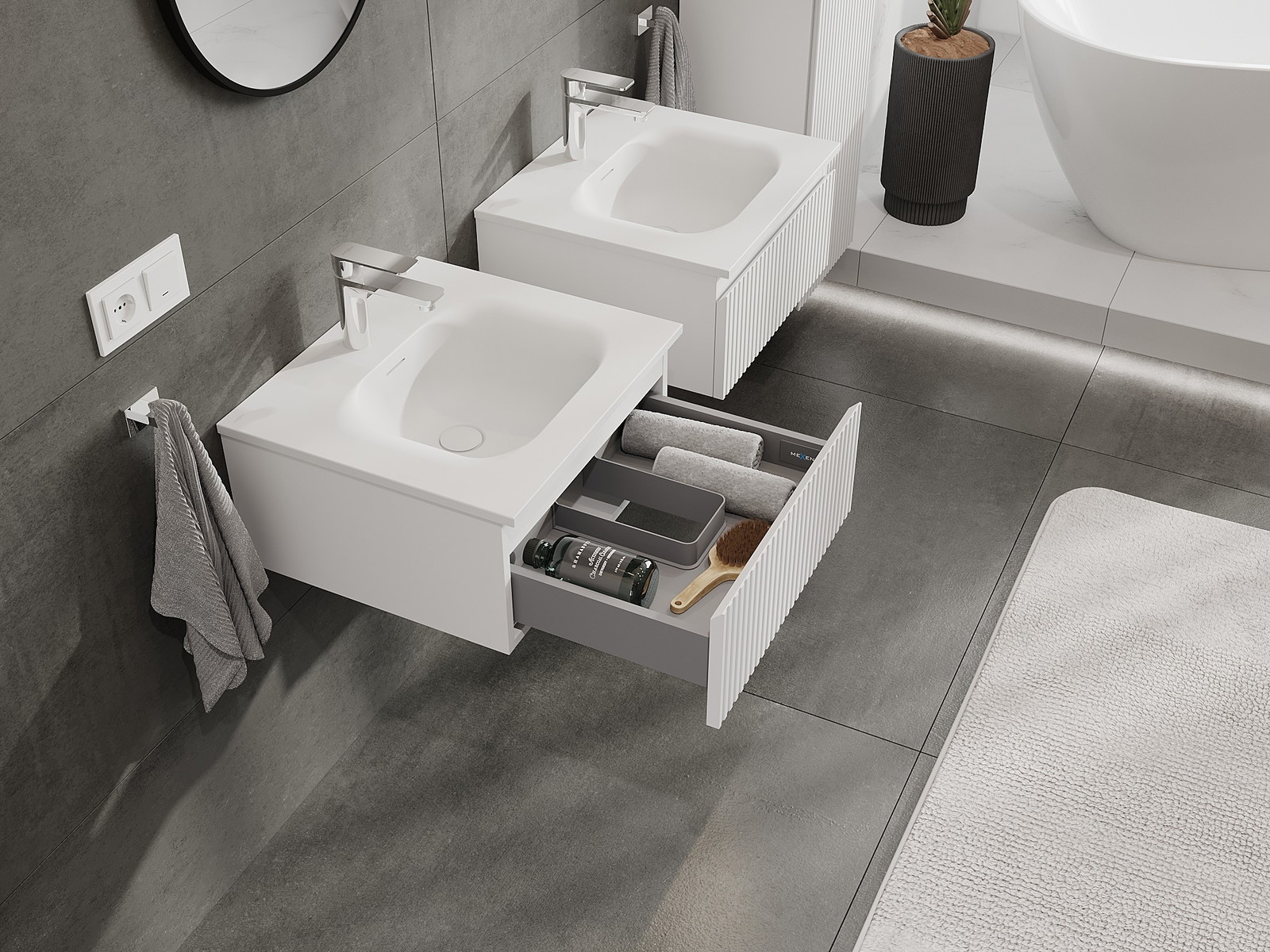 Korpus skrinky je dodávaný v plne zloženej podobe, čo znamená maximálne pohodlie a úsporu času. Nemusíte strácať hodiny skladaním nábytku – stačí ho namontovať na vybrané miesto v kúpeľni. Je to ideálne riešenie pre osoby, ktoré si cenia rýchlu montáž a okamžitý efekt.