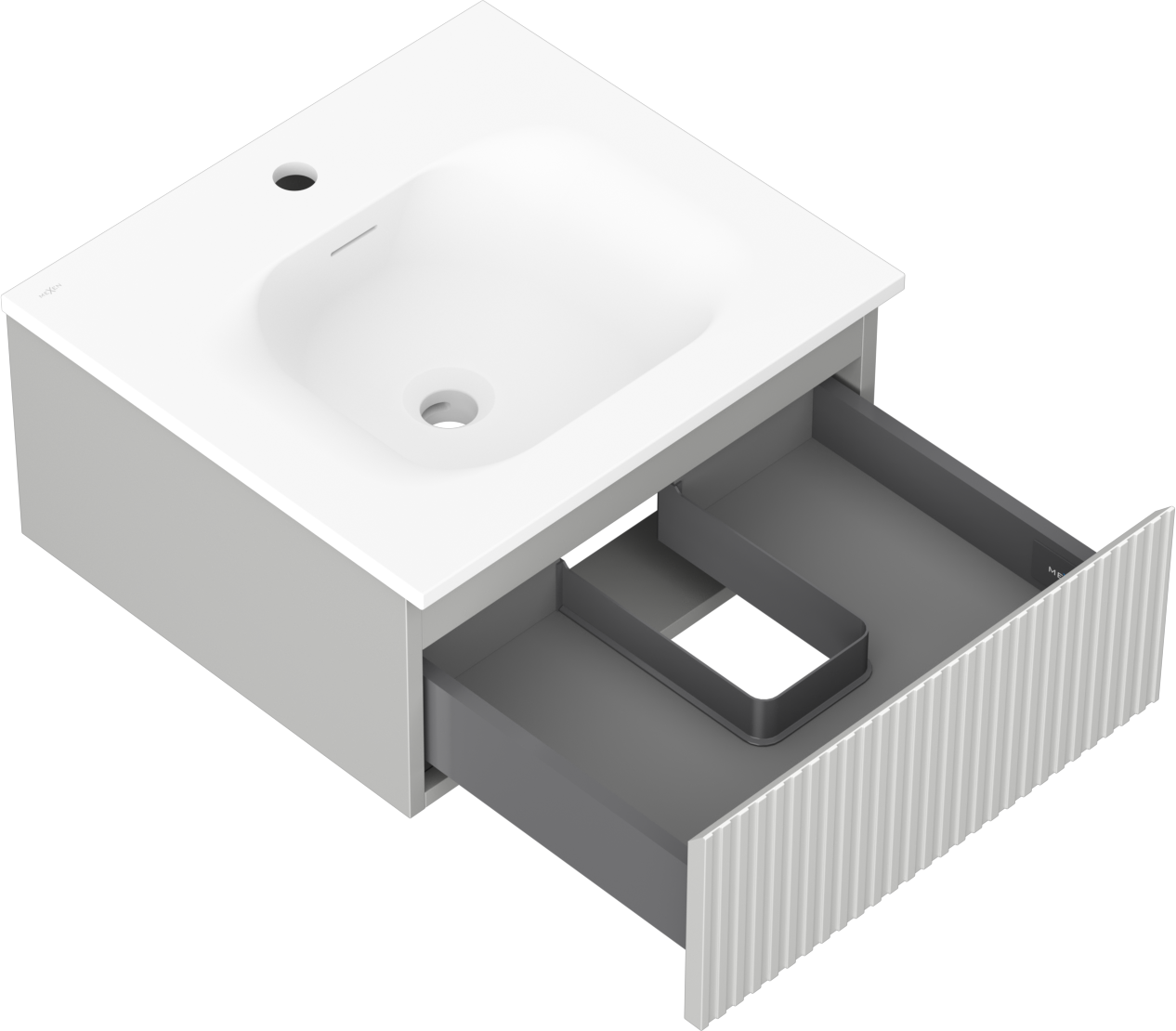 Výrez v zásuvke je navrhnutý tak, aby pojal sifón, ktorý je nevyhnutný v umývadlových inštaláciách. Vďaka tomu môže byť nábytok namontovaný plne funkčne, bez nutnosti vzdávať sa priestoru v zásuvke v prospech inštalácie.