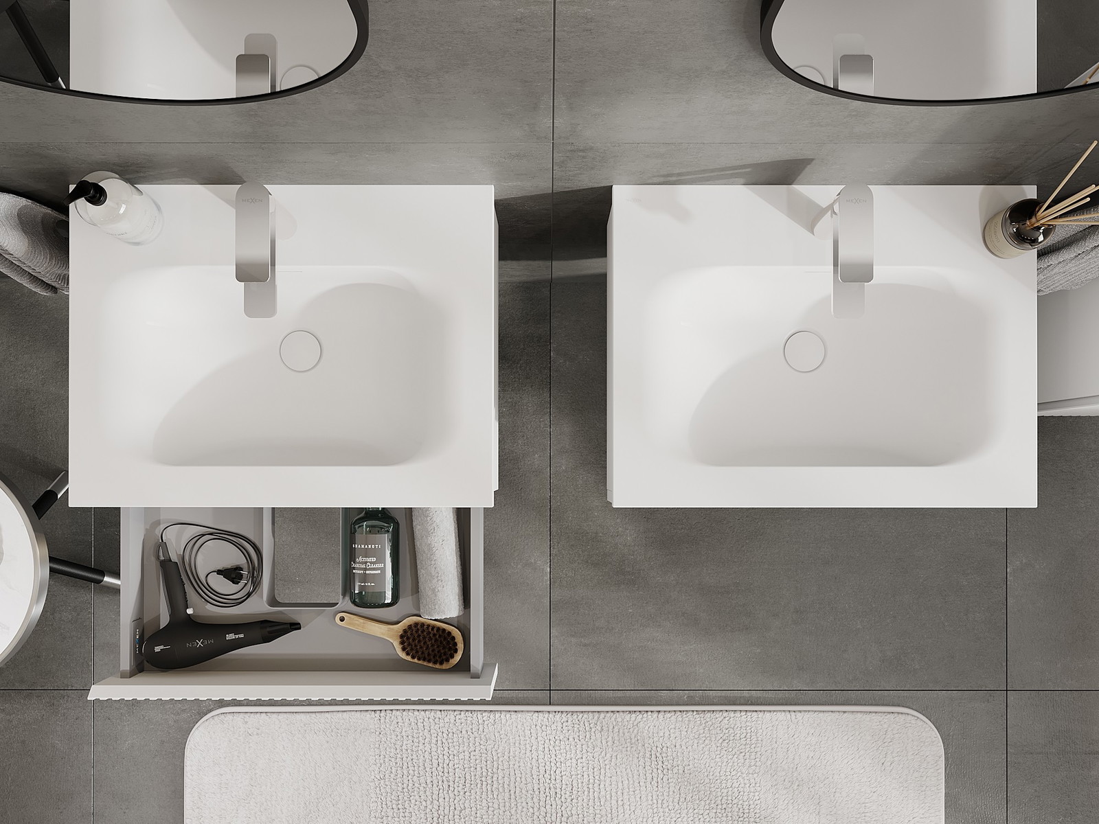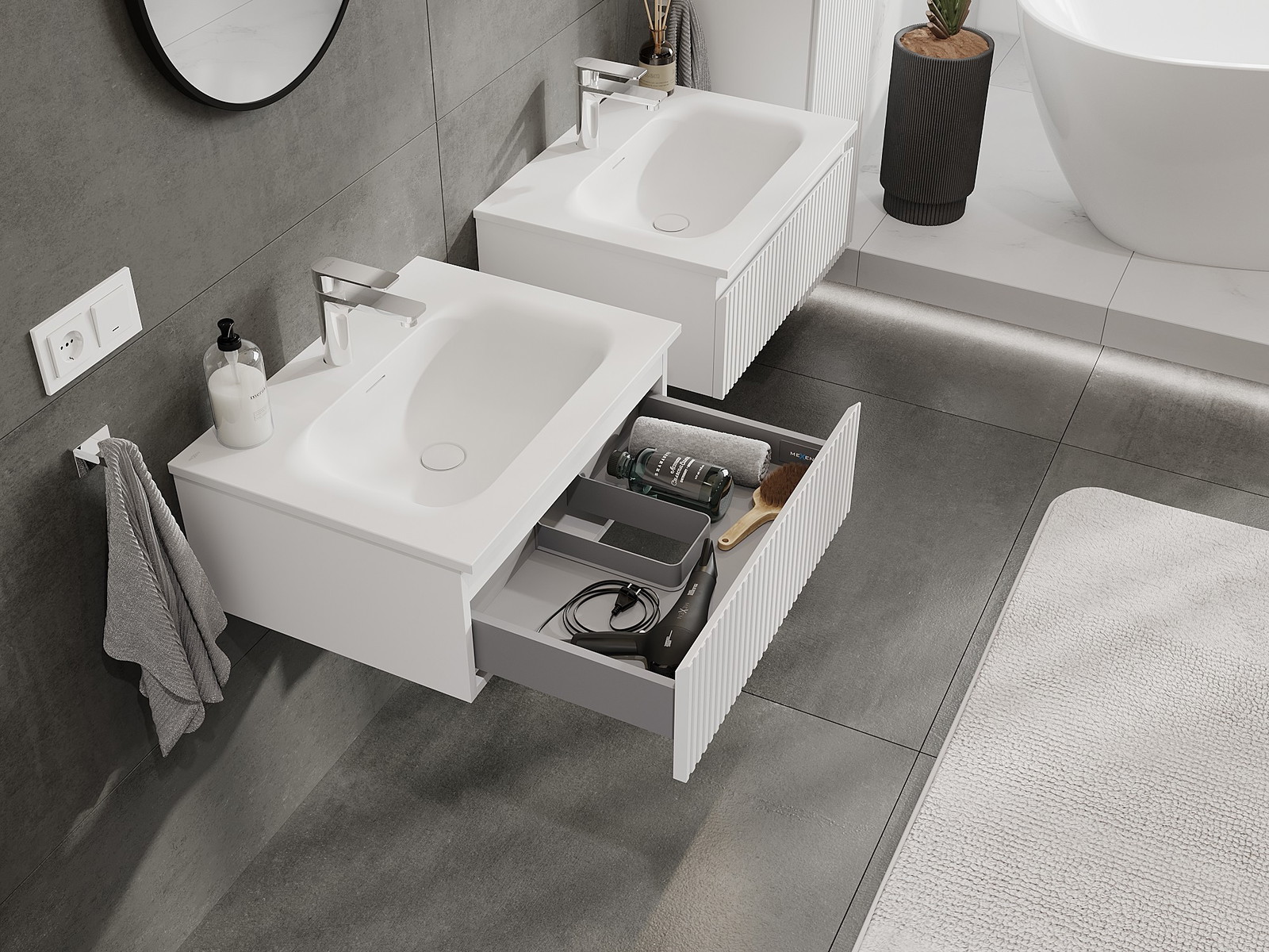 Výrez v zásuvke je navrhnutý tak, aby pojal sifón, ktorý je nevyhnutný v umývadlových inštaláciách. Vďaka tomu môže byť nábytok namontovaný plne funkčne, bez nutnosti vzdávať sa priestoru v zásuvke v prospech inštalácie.