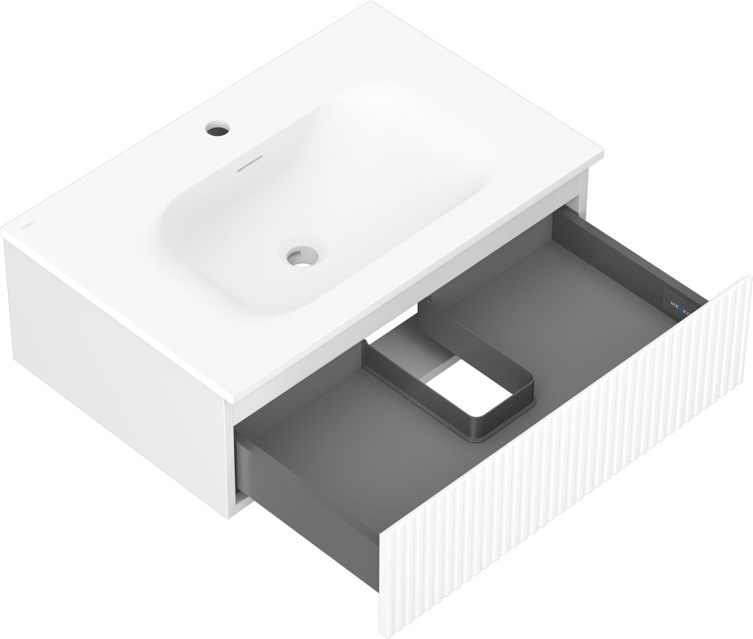 Výrez v zásuvke je navrhnutý tak, aby pojal sifón, ktorý je nevyhnutný v umývadlových inštaláciách. Vďaka tomu môže byť nábytok namontovaný plne funkčne, bez nutnosti vzdávať sa priestoru v zásuvke v prospech inštalácie.