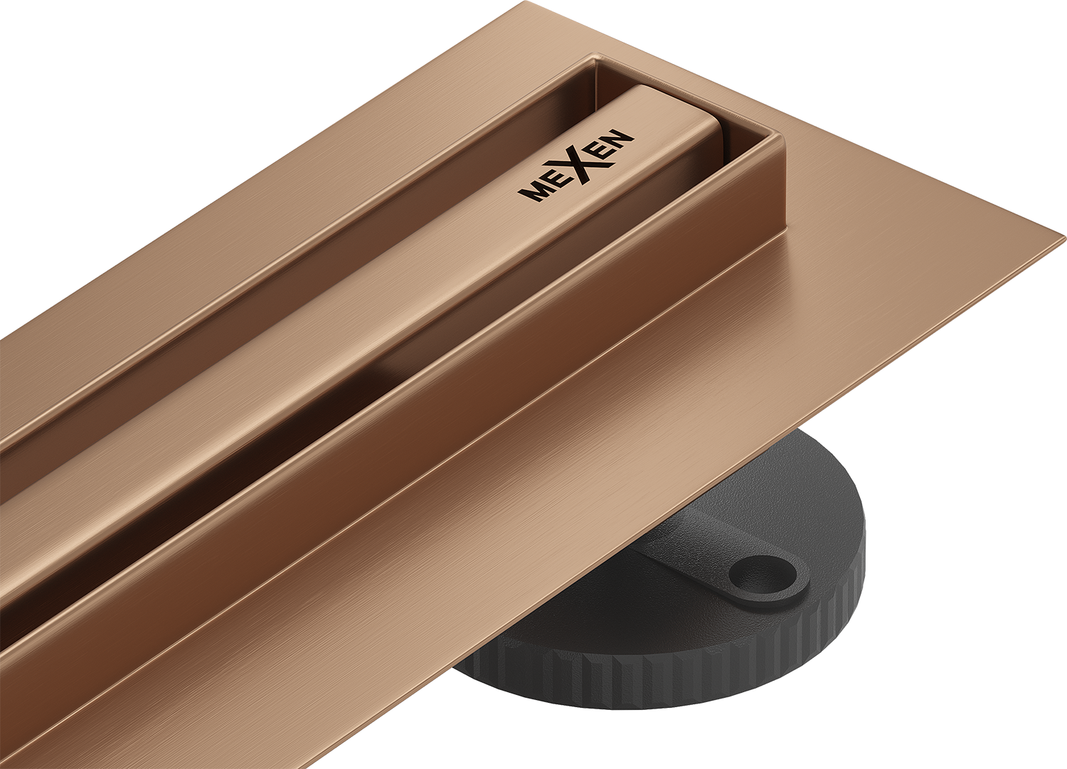 Mexen Flat 360° Slim otočný lineárny sprchový odtok 140 cm, kartáčovaná meď - 1C41140