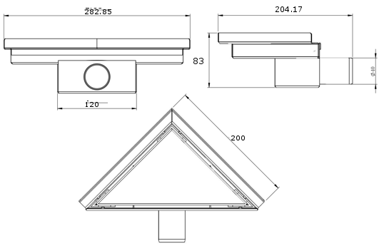 Líniový odtok je montovaný v hĺbke len 52 mm. Malá hĺbka umožňuje jednoduchšiu prípravu povrchu pre inštaláciu odtoku a ľahké vyrovnanie, čo zabezpečuje vysokú estetiku a efektívne odvádzanie vody.