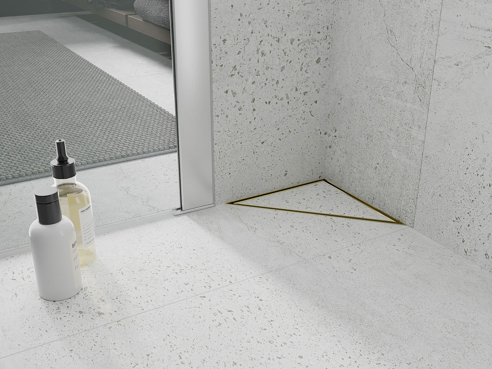 Mexen Flat-T M13 podlahový vpust trojuholníkový 20 x 20 cm, zlatý kartáčovaný - 1A10320