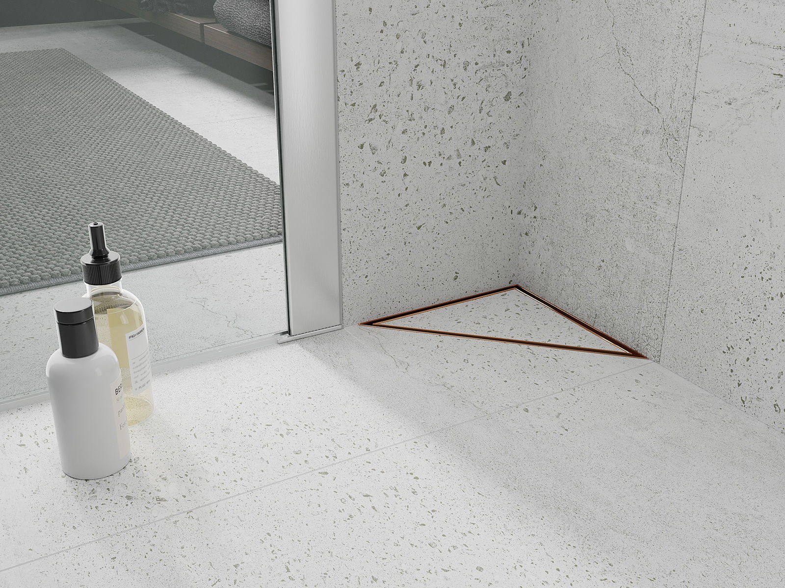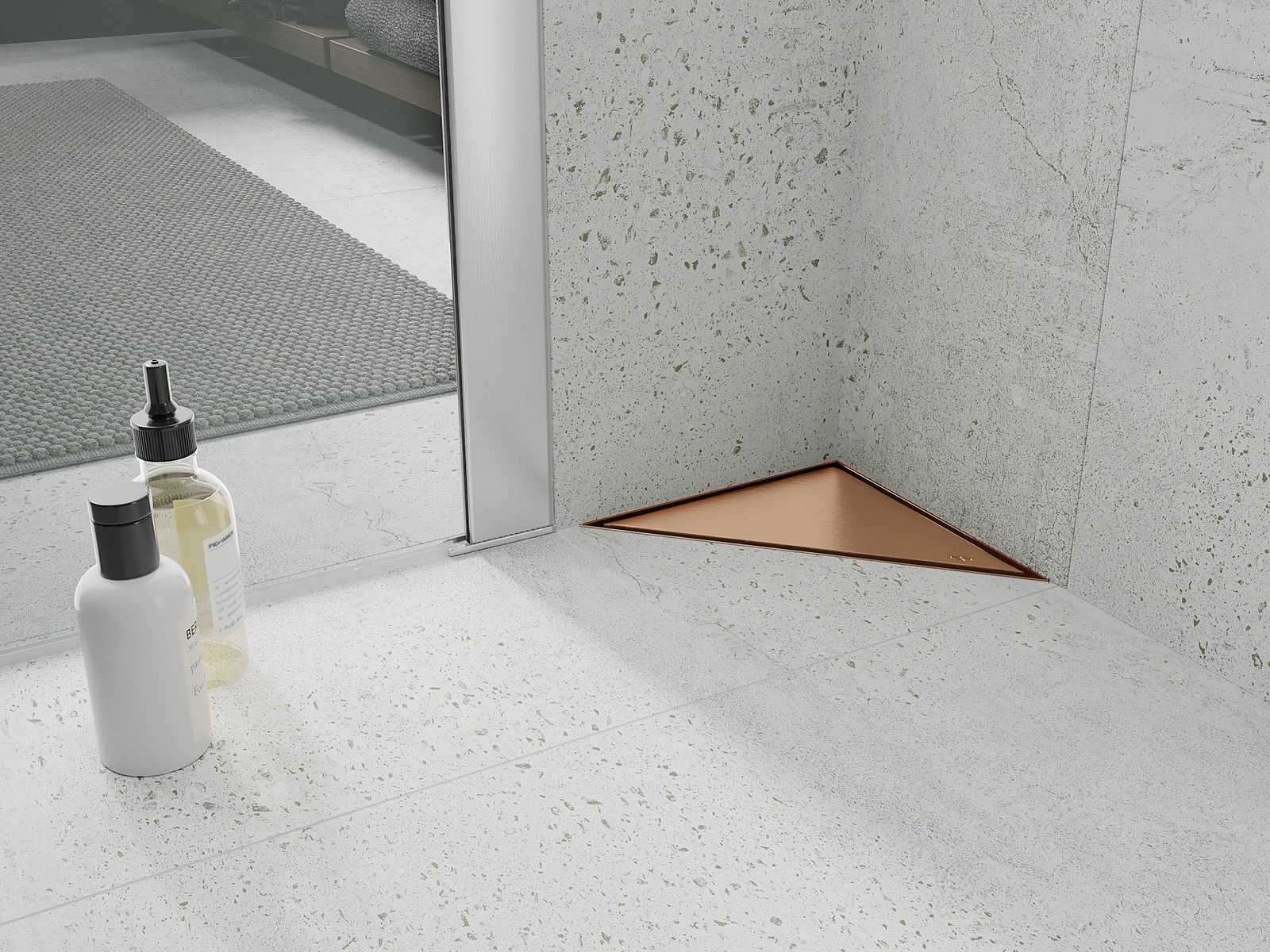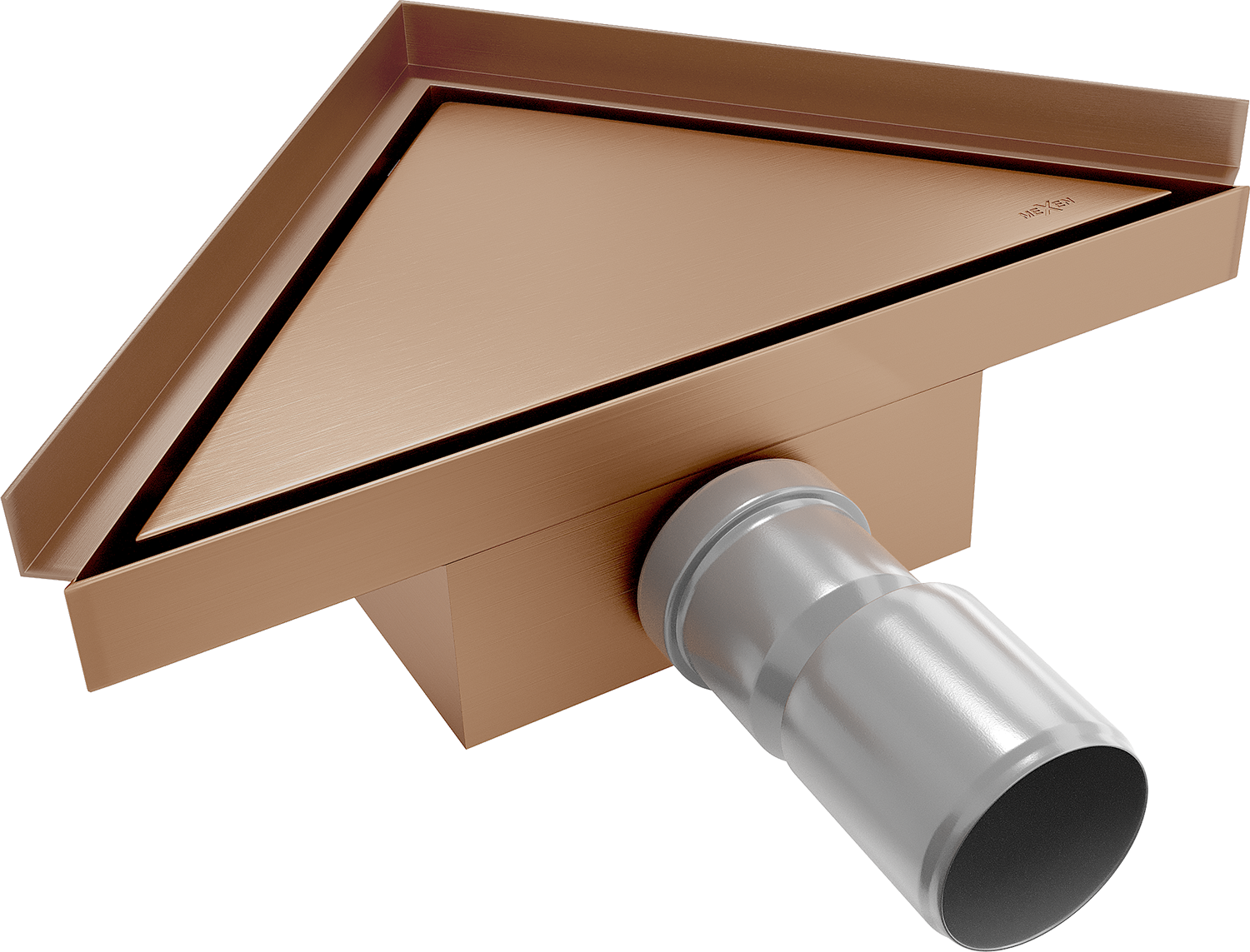 Mexen Flat-T M13 podlahový vpust trojuholníkový 20 x 20 cm, kefovaná meď - 1C10320