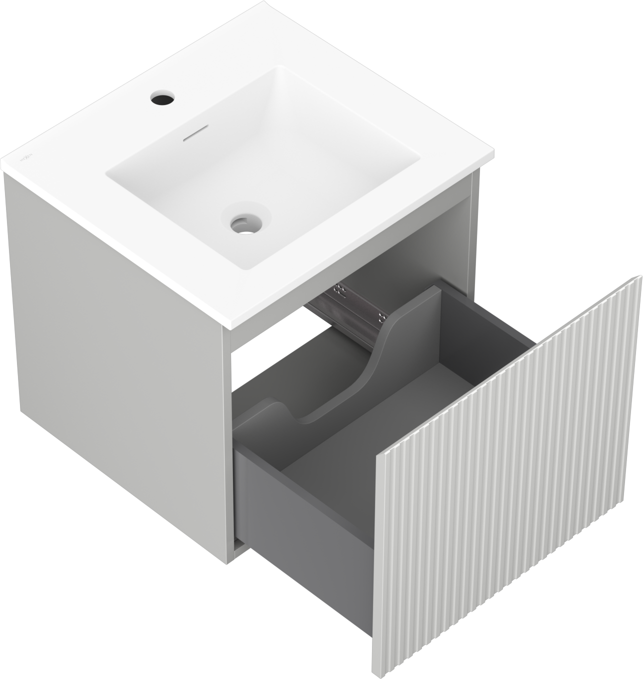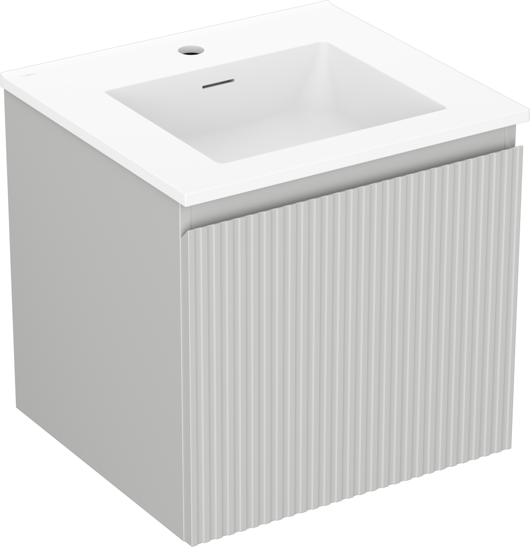 Mexen Rivel kúpeľňová skrinka 50 cm s umývadlom Otis, 1 zásuvka, ryhovaná, šedá matná/biela matná - 91A20-05047-1-BF62-W18M01
