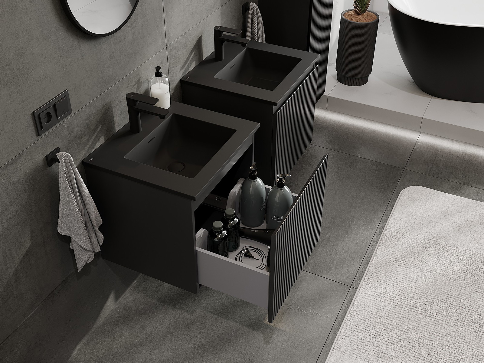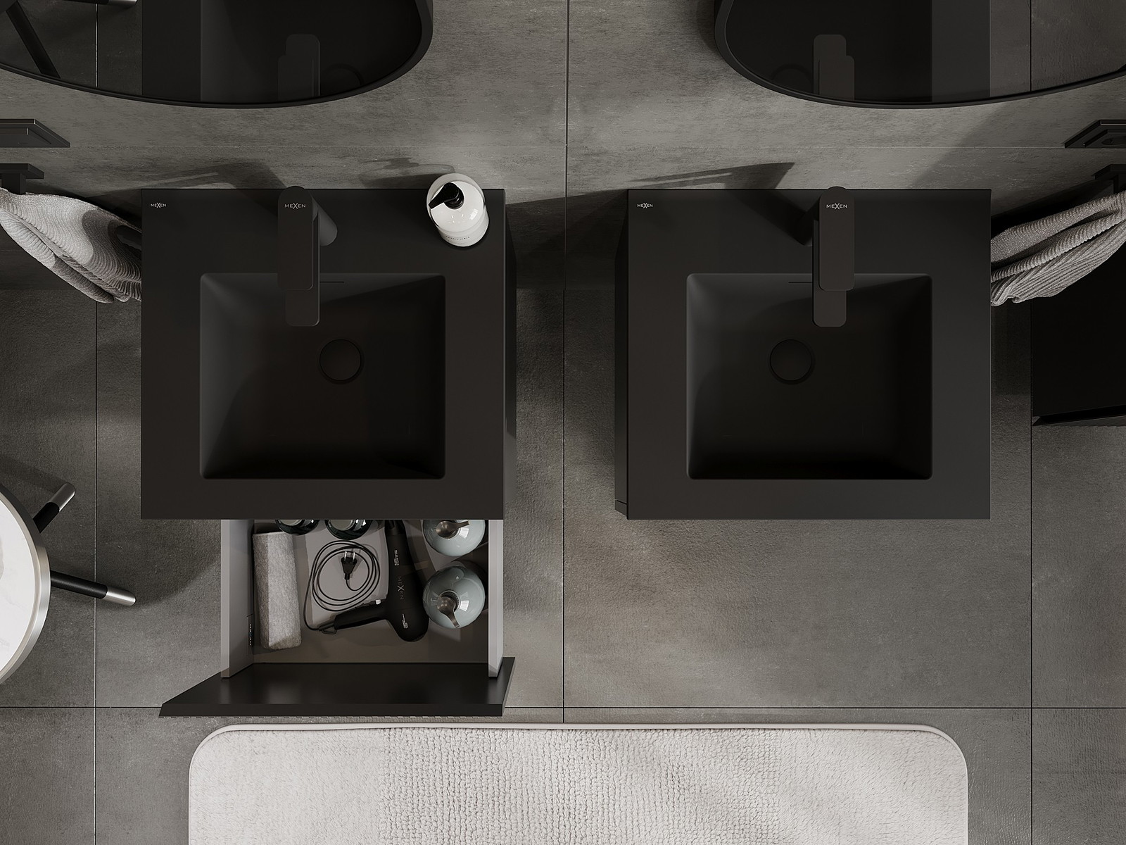 Mexen Rivel kúpeľňová skrinka 50 cm s umývadlom Otis, 1 zásuvka, ryhovaná, čierna matná - 91A20-05047-1-BF71-W18M71