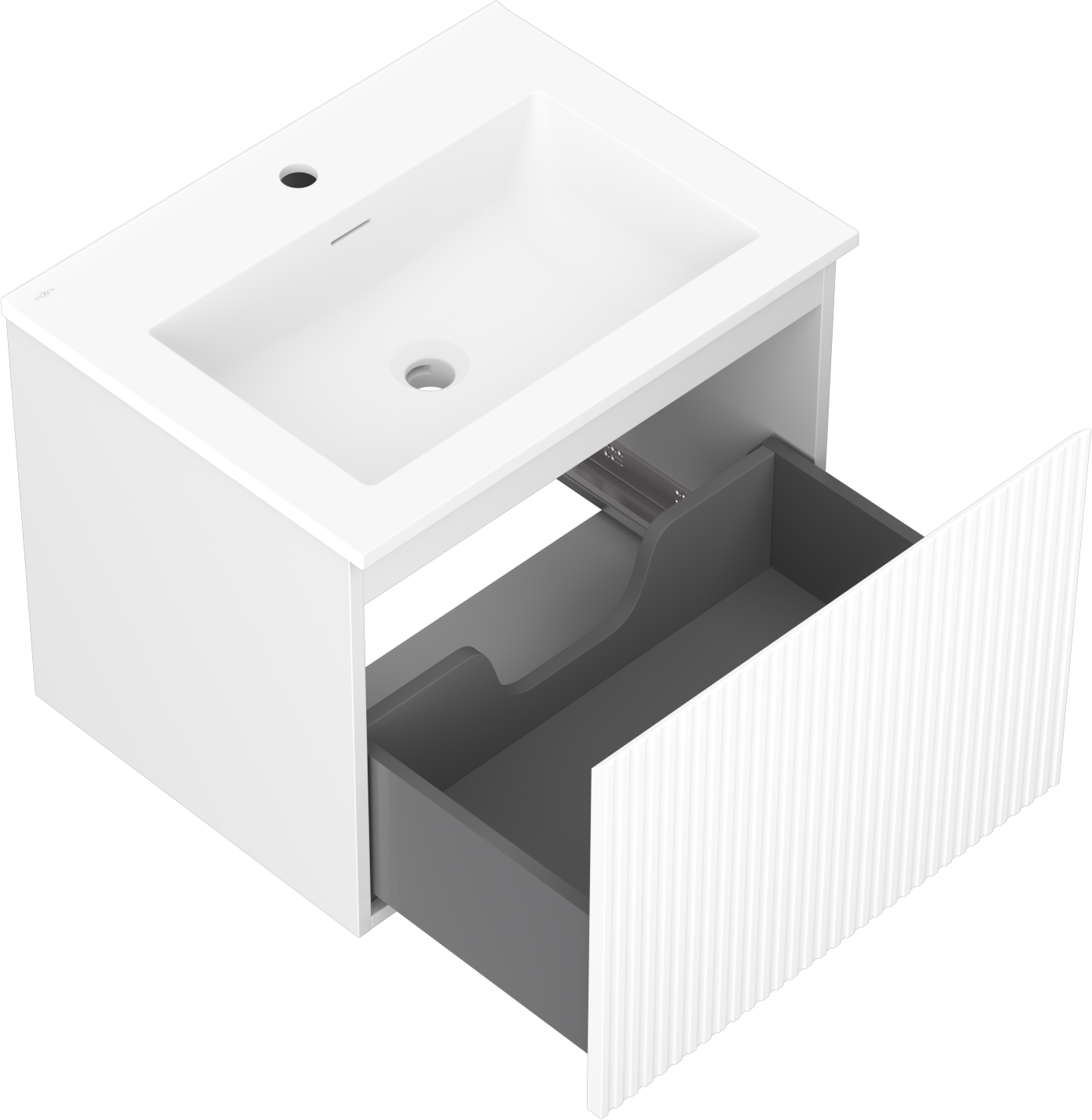 Mexen Rivel kúpeľňová skrinka 60 cm s umývadlom Otis, 1 zásuvka, ryhovaná, biela mat - 91A20-06047-1-BF01-W18M01