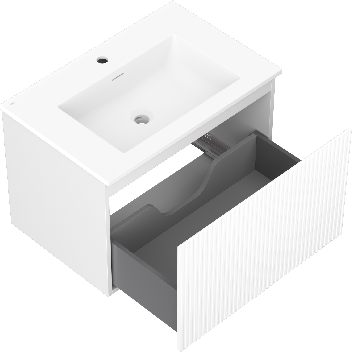 Mexen Rivel kúpeľňová skrinka 70 cm s umývadlom Otis, 1 zásuvka, ryhovaná, biela mat - 91A20-07047-1-BF01-W18M01