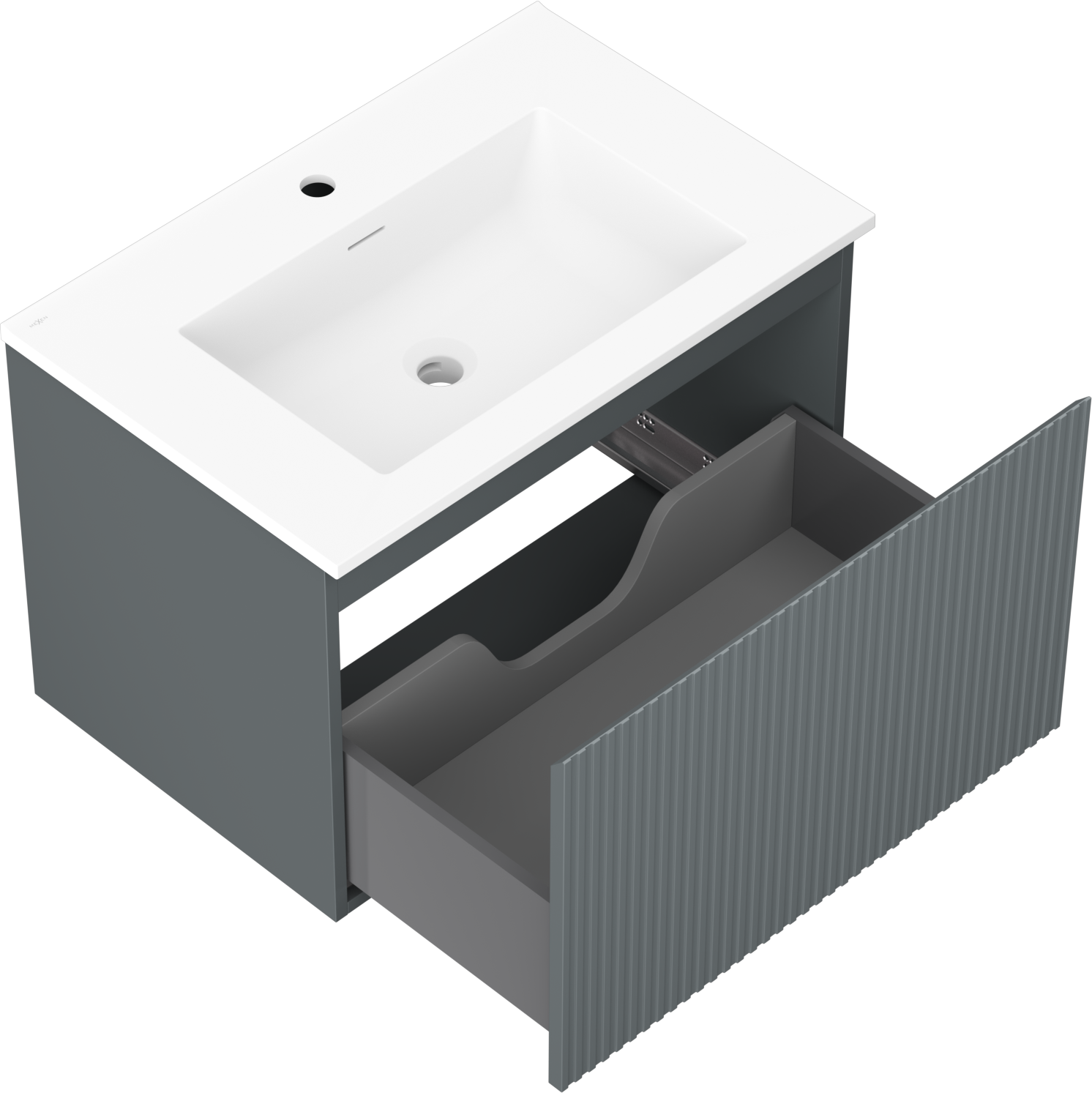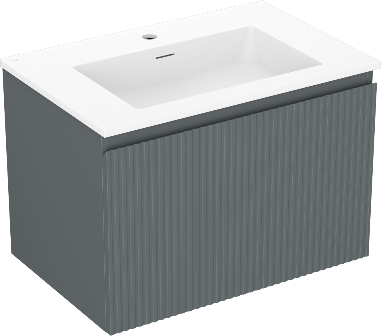 Mexen Rivel kúpeľňová skrinka 70 cm s umývadlom Otis, 1 zásuvka, ryhovaná, grafit mat/biela mat