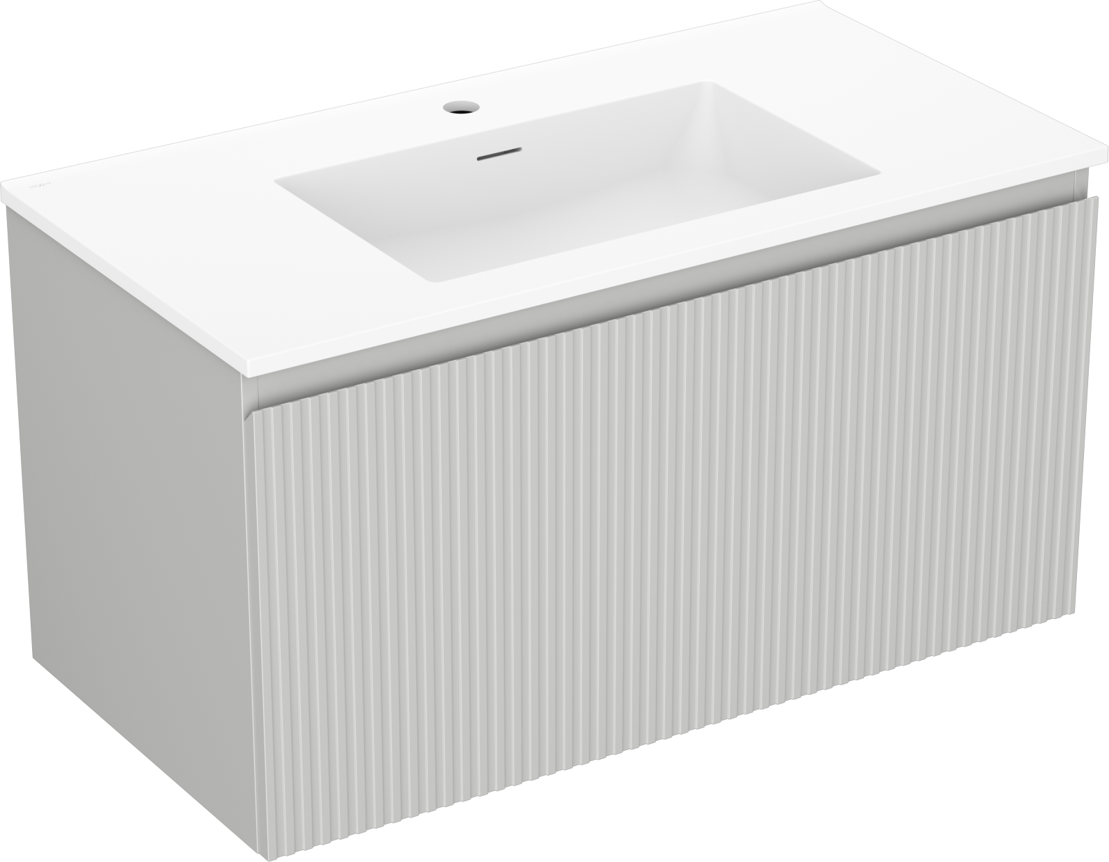 Mexen Rivel kúpeľňová skrinka 90 cm s umývadlom Otis, 1 zásuvka, ryhovaná, sivá matná/biela matná - 91A20-09047-1-BF62-W18M01