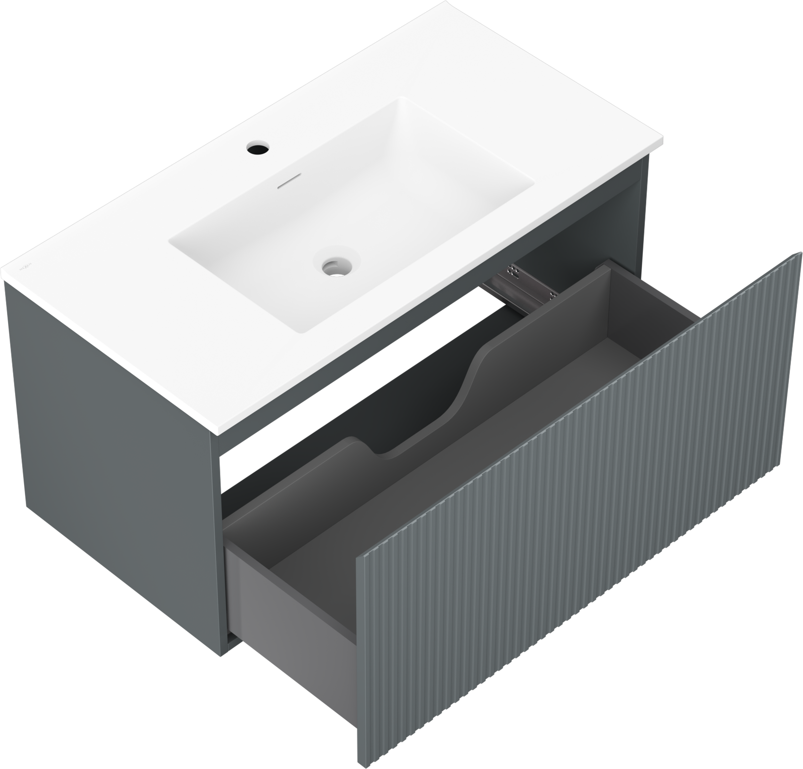Mexen Rivel kúpeľňová skrinka 90 cm s umývadlom Otis, 1 zásuvka, ryhovaná, grafit mat/biela mat - 91A20-09047-1-BF66-W18M01