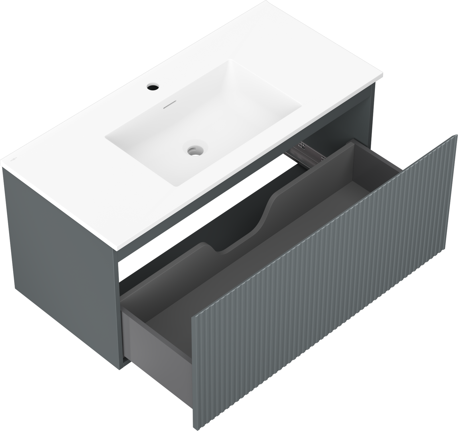 Mexen Rivel kúpeľňová skrinka 100 cm s umývadlom Otis, 1 zásuvka, ryhovaná, grafitová matná/biela matná
