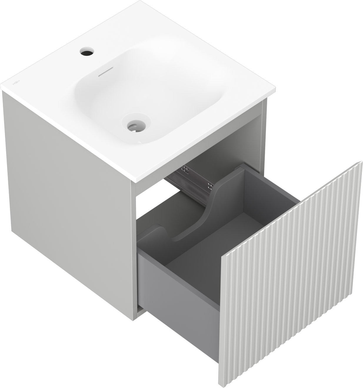 Výrez v zásuvke je navrhnutý tak, aby pojal sifón, ktorý je nevyhnutný v umývadlových inštaláciách. Vďaka tomu môže byť nábytok namontovaný plne funkčne, bez nutnosti vzdávať sa priestoru v zásuvke v prospech inštalácie.
