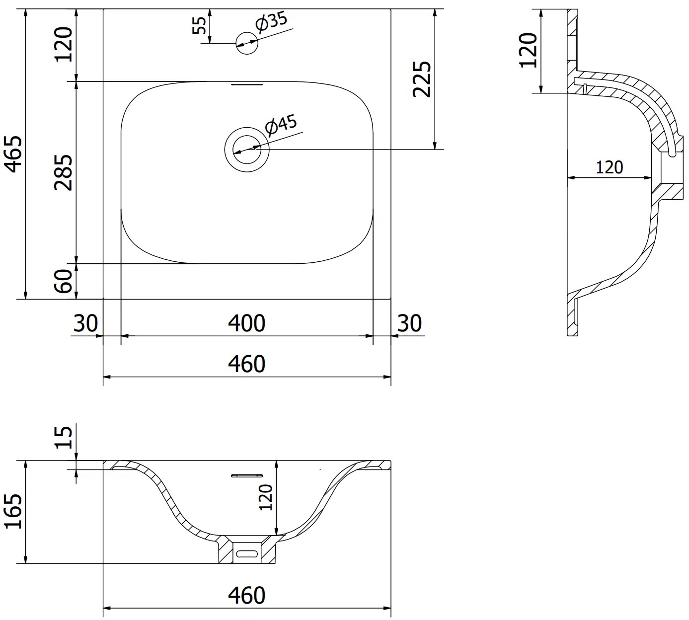 Rozmery umývadla: