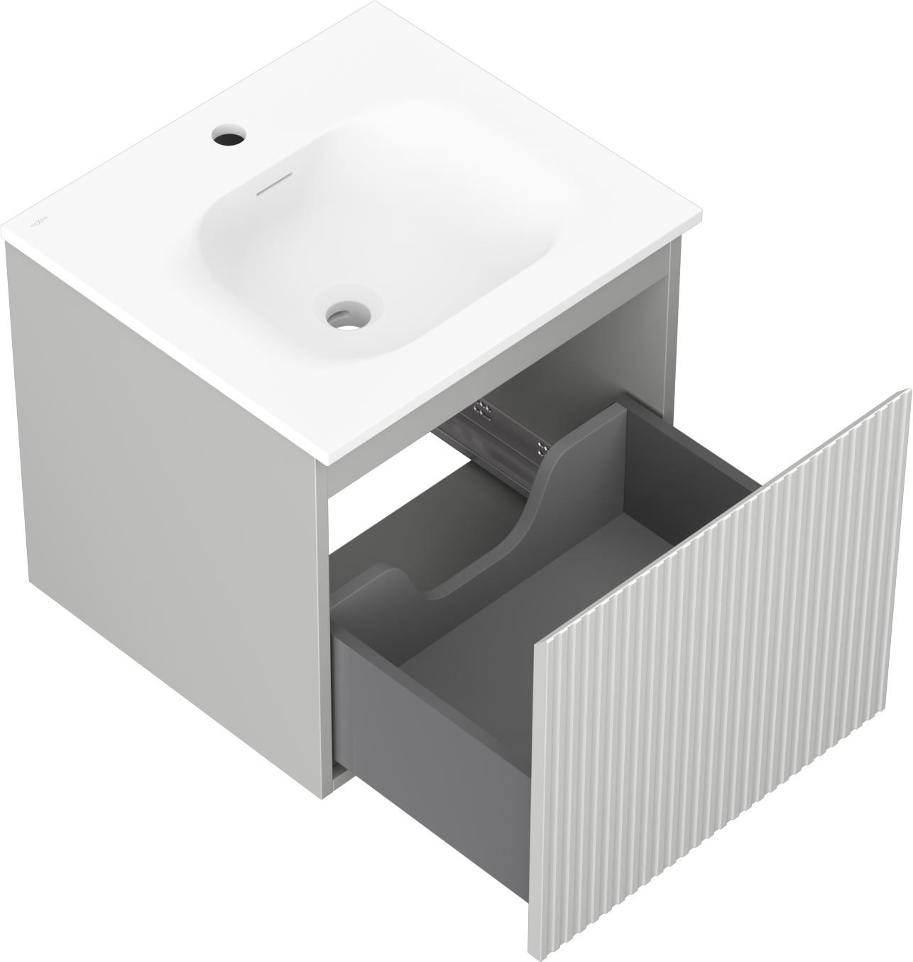 Výrez v zásuvke je navrhnutý tak, aby pojal sifón, ktorý je nevyhnutný v umývadlových inštaláciách. Vďaka tomu môže byť nábytok namontovaný plne funkčne, bez nutnosti vzdávať sa priestoru v zásuvke v prospech inštalácie.