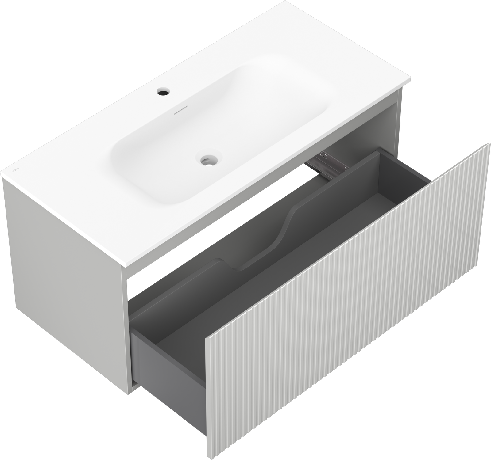 Výrez v zásuvke je navrhnutý tak, aby pojal sifón, ktorý je nevyhnutný v umývadlových inštaláciách. Vďaka tomu môže byť nábytok namontovaný plne funkčne, bez nutnosti vzdávať sa priestoru v zásuvke v prospech inštalácie.