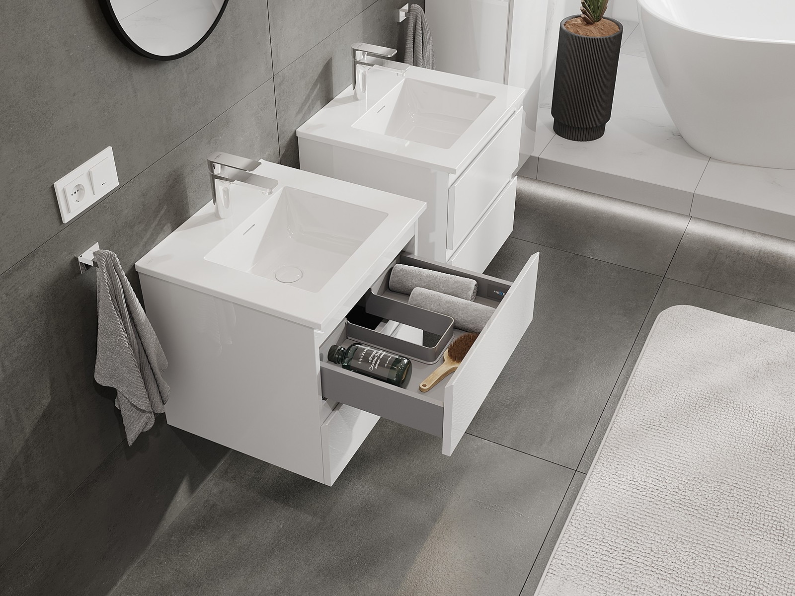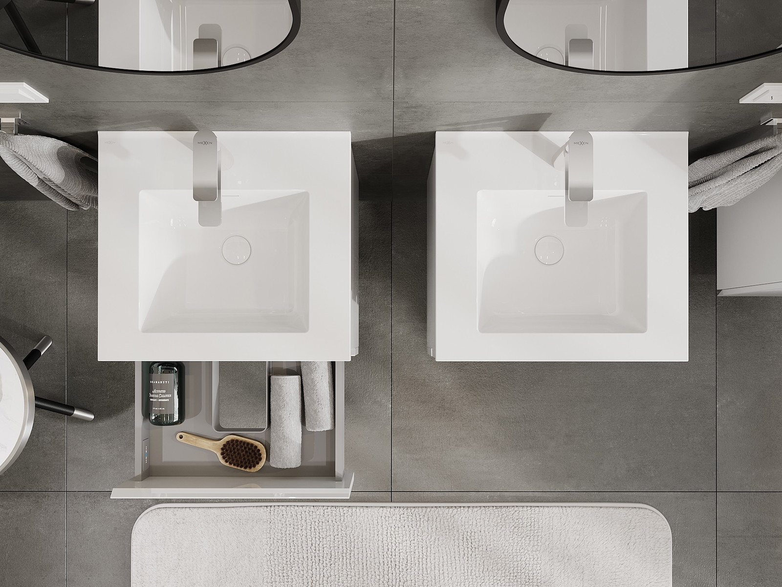 Mexen Orio kúpeľňová skrinka 50 cm s umývadlom Otis, 2 zásuvky, biely lesk - 91A10-05047-2-BFF00-W18M00