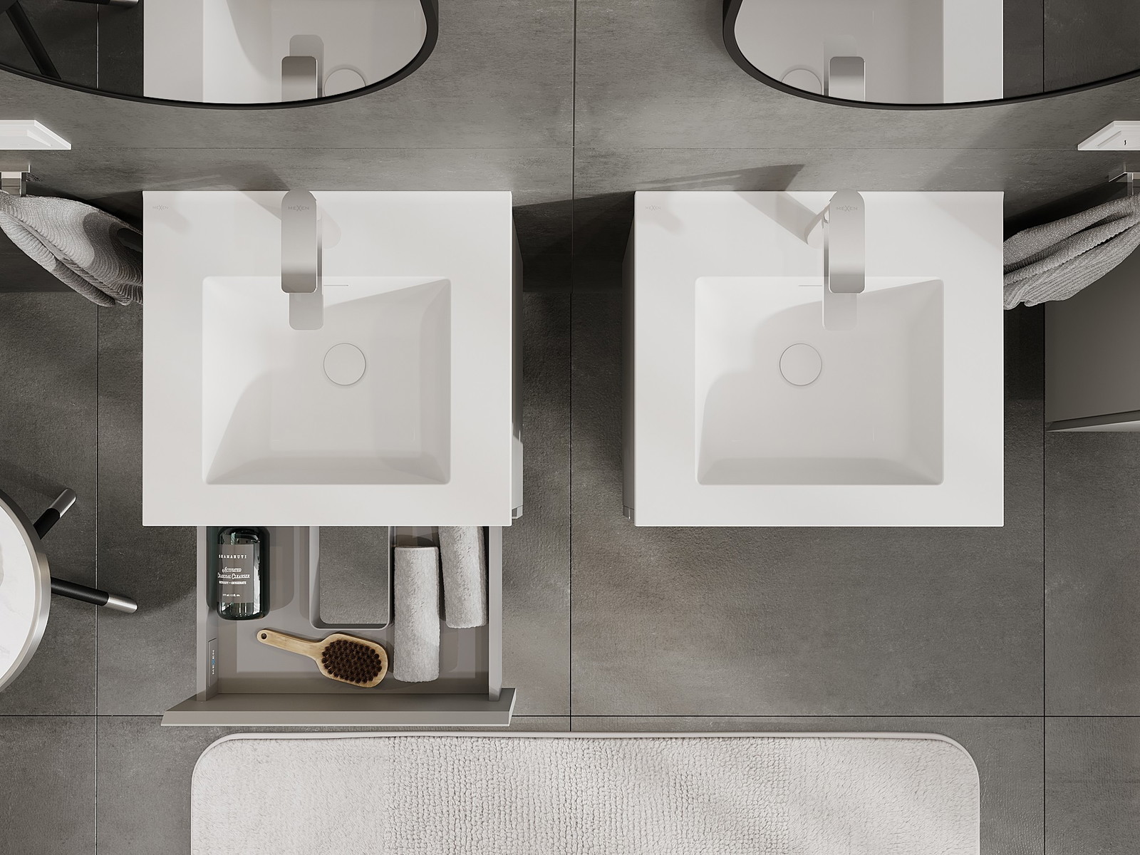 Naše modulárne kúpeľňové nábytkové prvky možno kombinovať v rôznych farebných konfiguráciách, čo umožňuje úplnú personalizáciu. Môžete si vybrať vzhľad aj funkcie jednotlivých prvkov, čo umožňuje prispôsobiť nábytok vašim vlastným štýlovým a používateľským preferenciám.