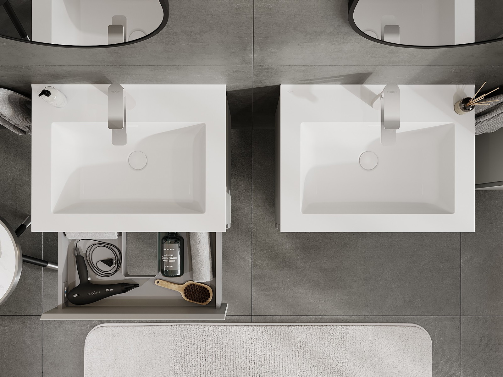 Naše modulárne kúpeľňové nábytkové prvky možno kombinovať v rôznych farebných konfiguráciách, čo umožňuje úplnú personalizáciu. Môžete si vybrať vzhľad aj funkcie jednotlivých prvkov, čo umožňuje prispôsobiť nábytok vašim vlastným štýlovým a používateľským preferenciám.