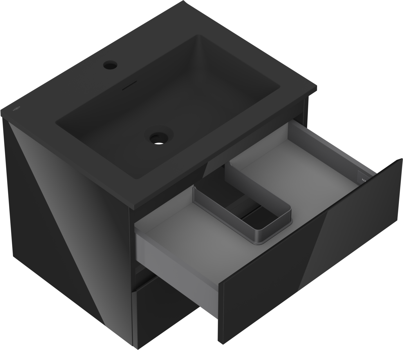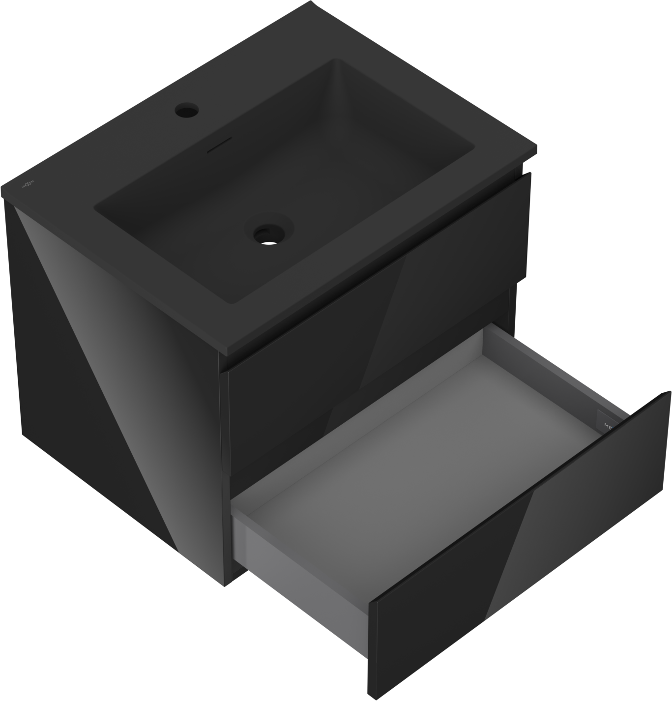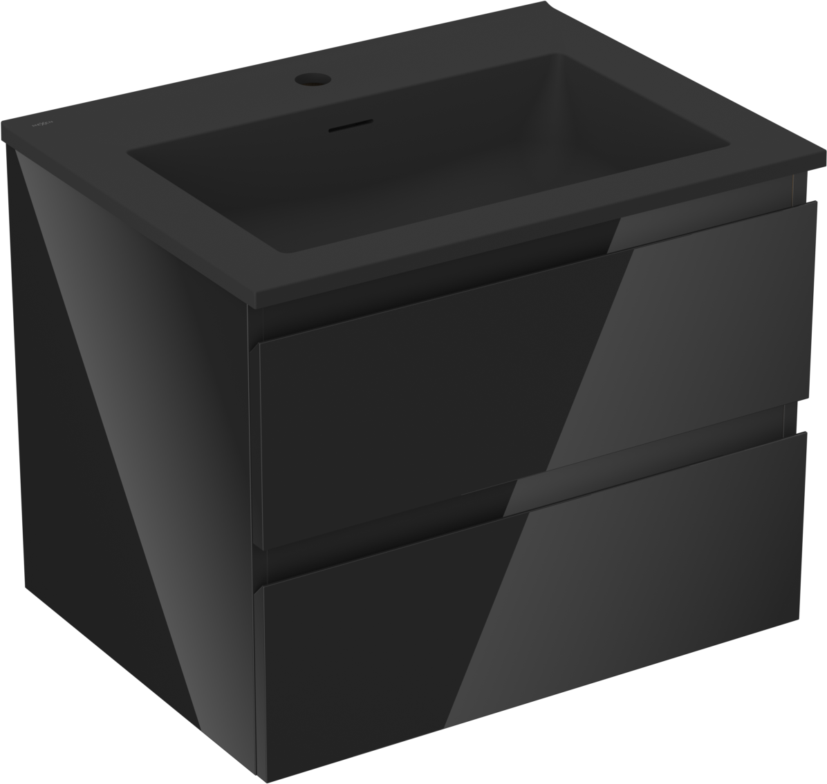 Mexen Orio kúpeľňová skrinka 60 cm s umývadlom Otis, 2 zásuvky, čierny lesk/čierny mat - 91A10-06047-2-BFF70-W18M71