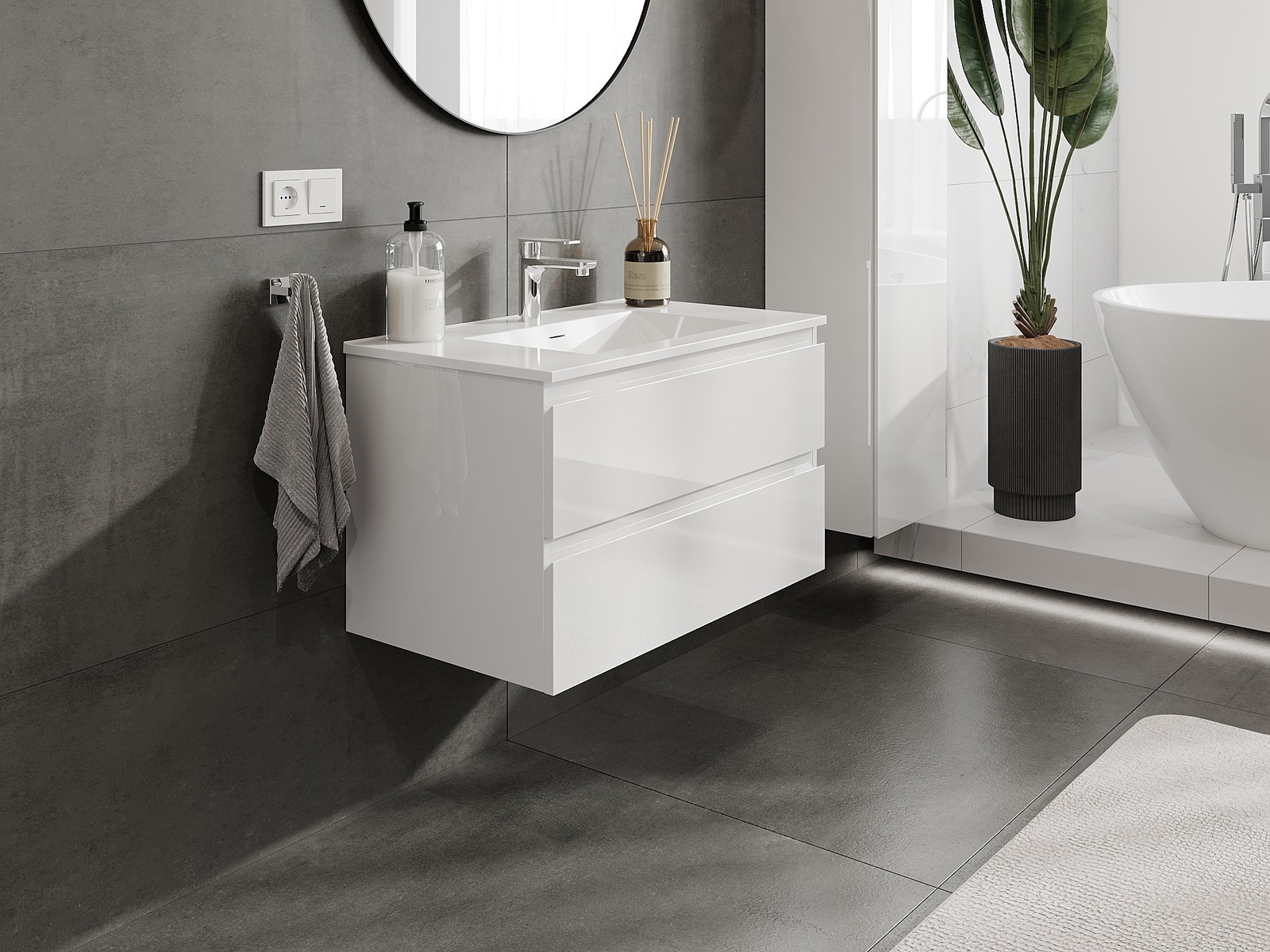 Mexen Orio kúpeľňová skrinka 80 cm s umývadlom Otis, 2 zásuvky, biely lesk - 91A10-08047-2-BFF00-W18M00