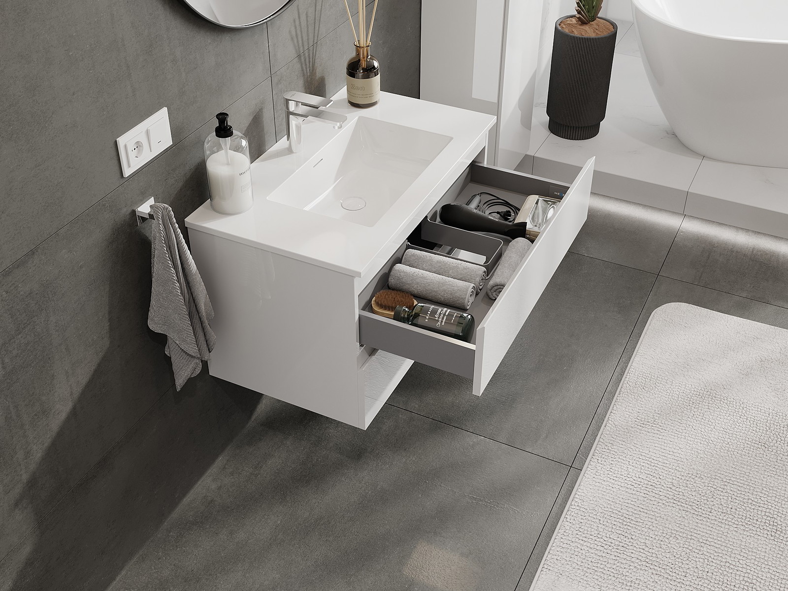 Priestranná zásuvka s funkciou tichého zatvárania