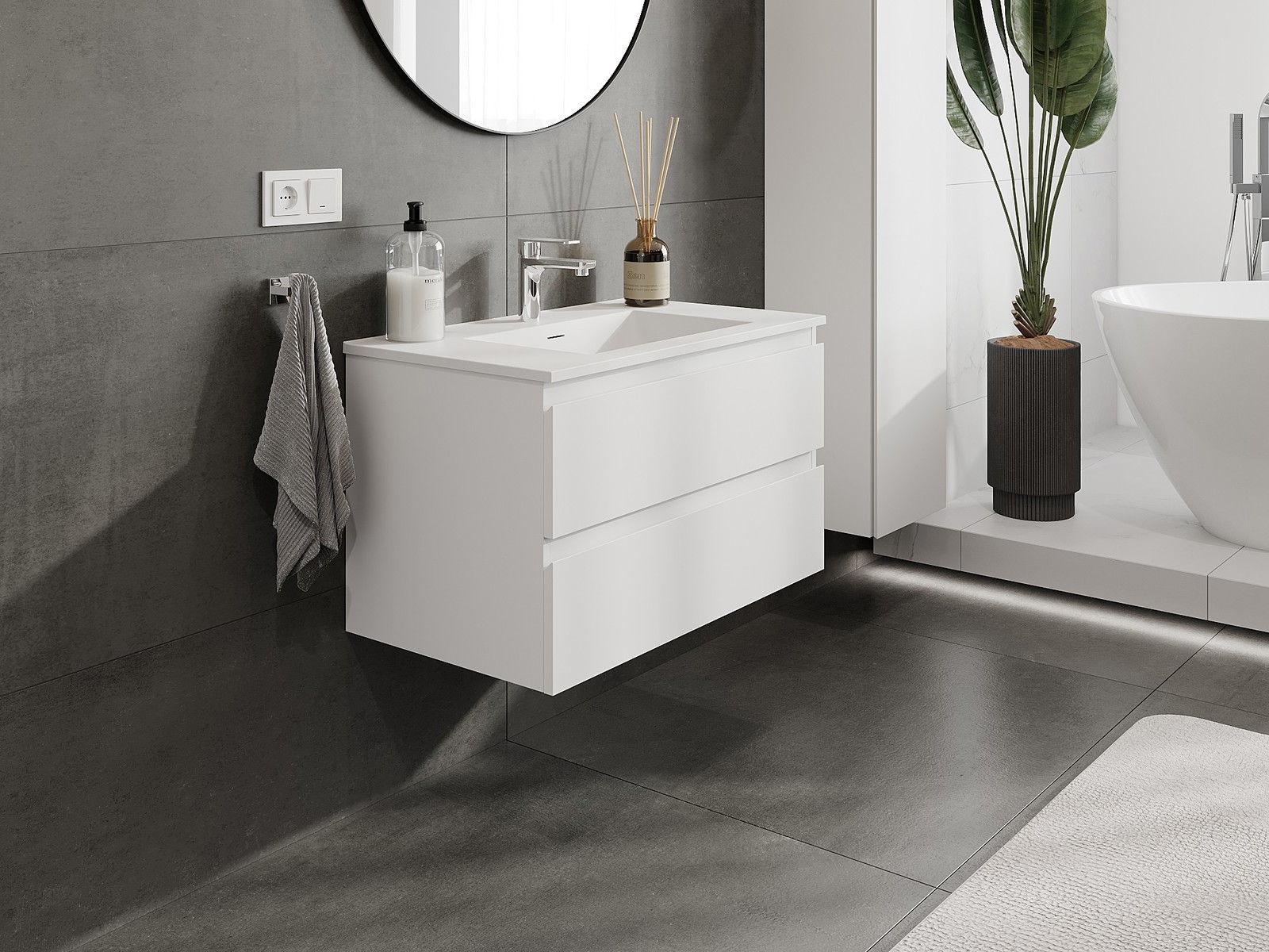 Vďaka pevným materiálom, precíznemu prevedeniu a moderným technologickým riešeniam, produkt poskytuje pohodlie používania, odolnosť voči vlhkosti a zmenám teploty, ako aj elegantný vzhľad, ktorý sa hodí k rôznym štýlom kúpeľní.