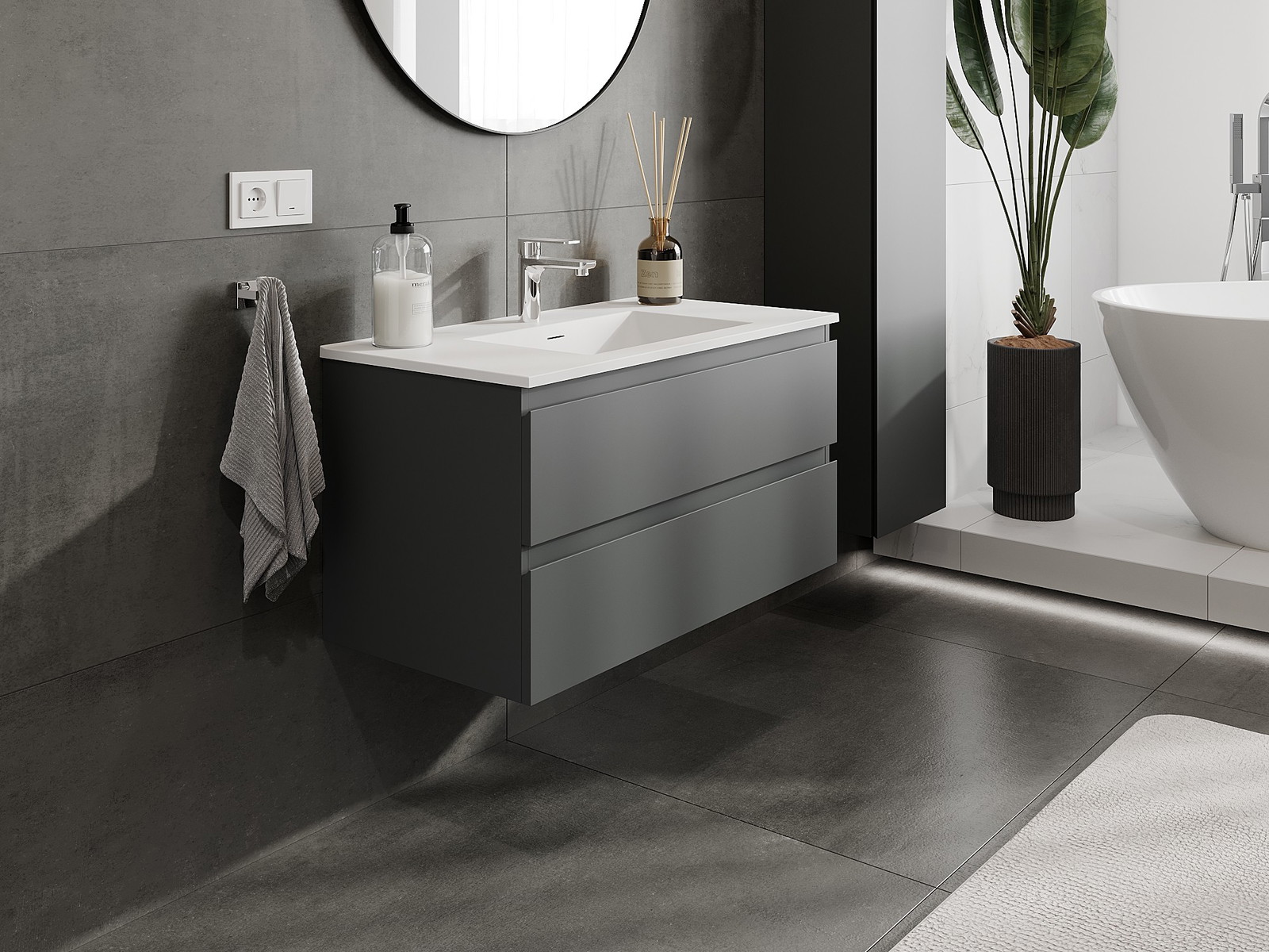 Naše modulárne kúpeľňové nábytkové prvky možno kombinovať v rôznych farebných konfiguráciách, čo umožňuje úplnú personalizáciu. Môžete si vybrať vzhľad aj funkcie jednotlivých prvkov, čo umožňuje prispôsobiť nábytok vašim vlastným štýlovým a používateľským preferenciám.