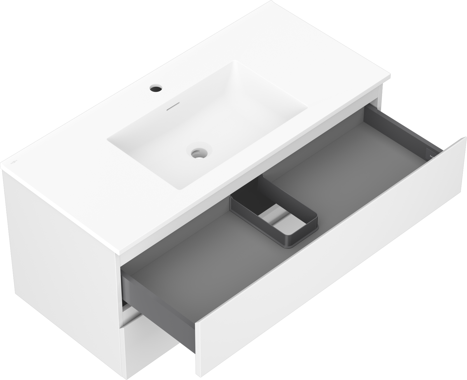Výrez v zásuvke je navrhnutý tak, aby pojal sifón, ktorý je nevyhnutný v umývadlových inštaláciách. Vďaka tomu môže byť nábytok namontovaný plne funkčne, bez nutnosti vzdávať sa priestoru v zásuvke v prospech inštalácie.