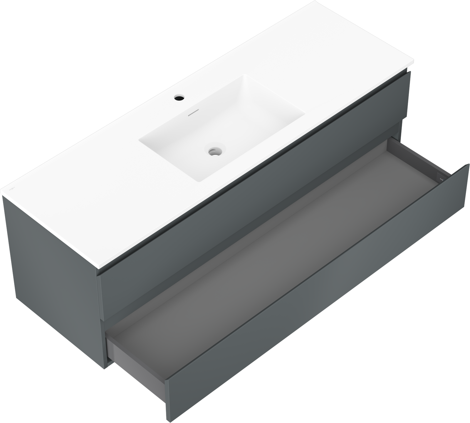 Mexen Orio kúpeľňová skrinka 140 cm s umývadlom Otis, 2 zásuvky, grafitová matná/biela matná - 91A10-14047-2-BFF66-W18M01
