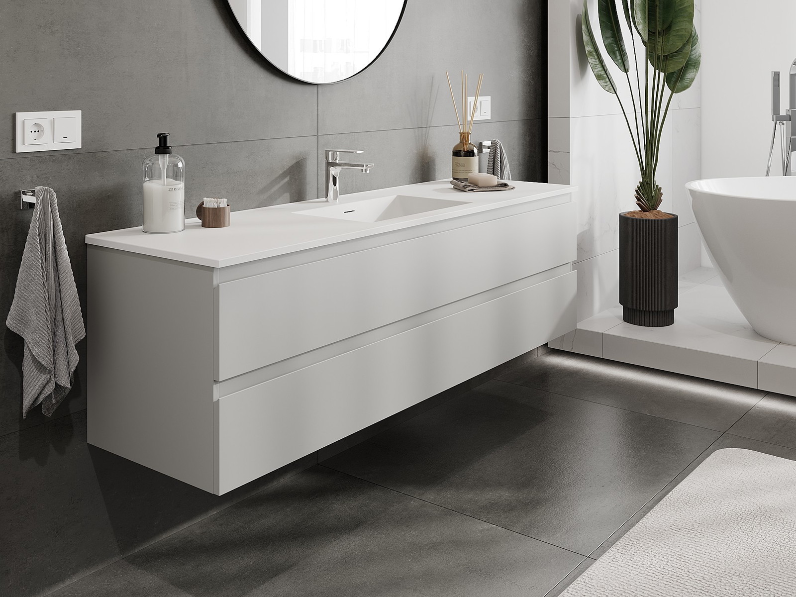 Vďaka pevným materiálom, precíznemu prevedeniu a moderným technologickým riešeniam, produkt poskytuje pohodlie používania, odolnosť voči vlhkosti a zmenám teploty, ako aj elegantný vzhľad, ktorý sa hodí k rôznym štýlom kúpeľní.