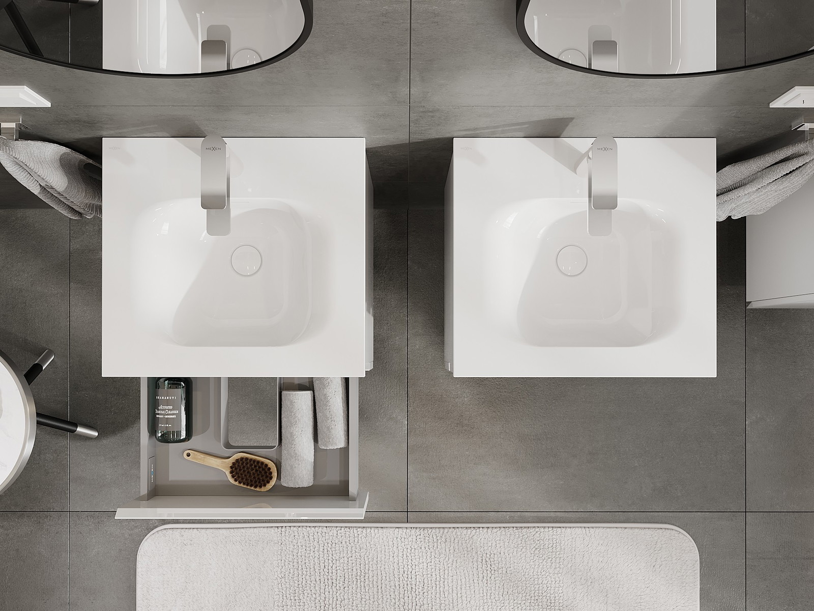 Naše modulárne kúpeľňové nábytkové prvky možno kombinovať v rôznych farebných konfiguráciách, čo umožňuje úplnú personalizáciu. Môžete si vybrať vzhľad aj funkcie jednotlivých prvkov, čo umožňuje prispôsobiť nábytok vašim vlastným štýlovým a používateľským preferenciám.